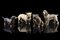 Different manufactures of the 20th century. A group of four metal dogs (defects)