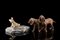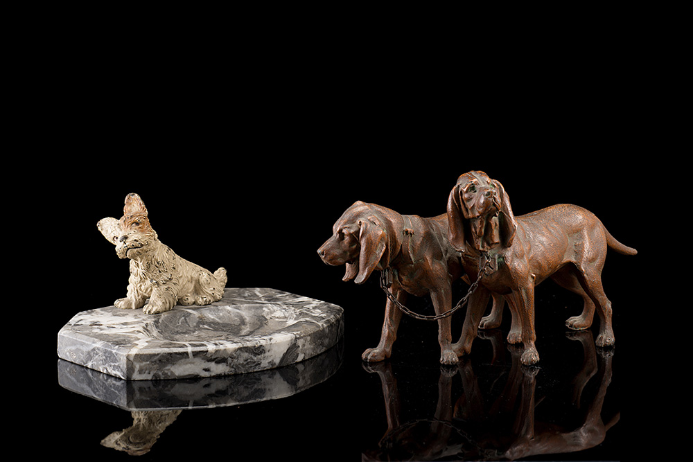 20th-century Viennese art. Lot comprising a marble ashtray and a bronze sculpture representing dogs