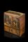 Scatola porta gioie lastronata in radica. Piano decorato da cane e...