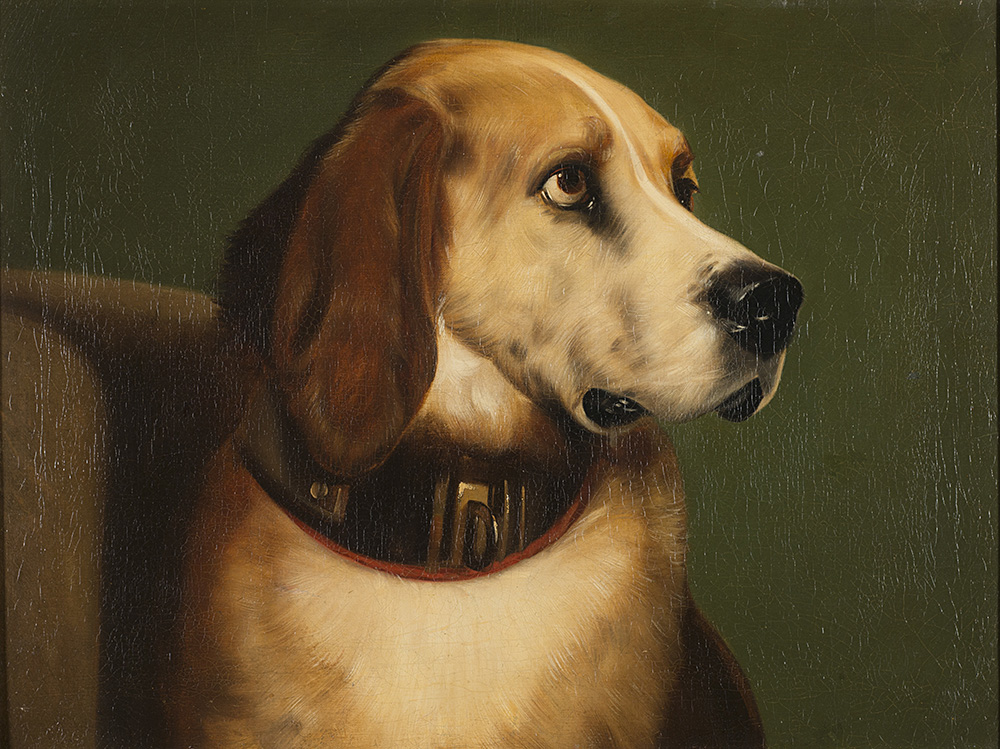 Firma indecifrata "Bloodhound" olio su tela (cm 50x65) Firmato e datato 1871 al retro