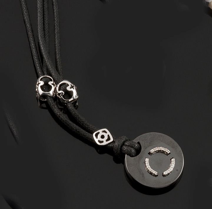 CIONDOLO Ciondolo in ematite di forma rotonda con al centro piccoli diamanti...