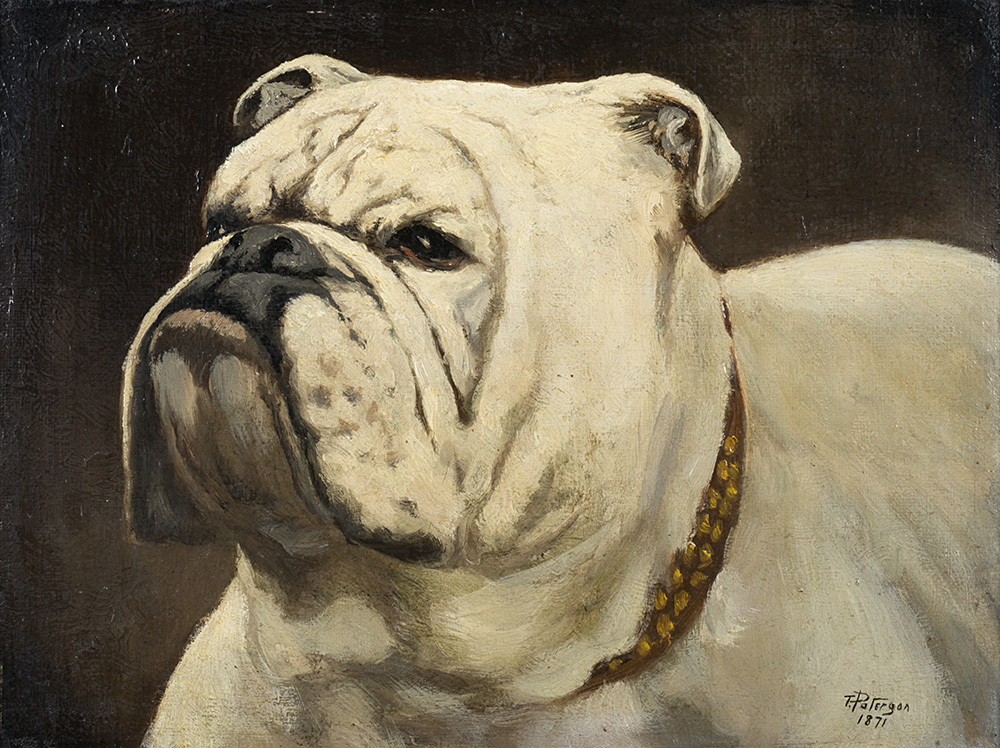 T. Patergan "Bulldog Inglese 1871" olio su cartone telato (cm 23x31) Firmato e datato in basso a destra. In cornice