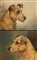 "Ritratti di Fox Terriers" coppia di dipinti ad olio su cartone pressato (cm 26x31) Firmati. In cornici