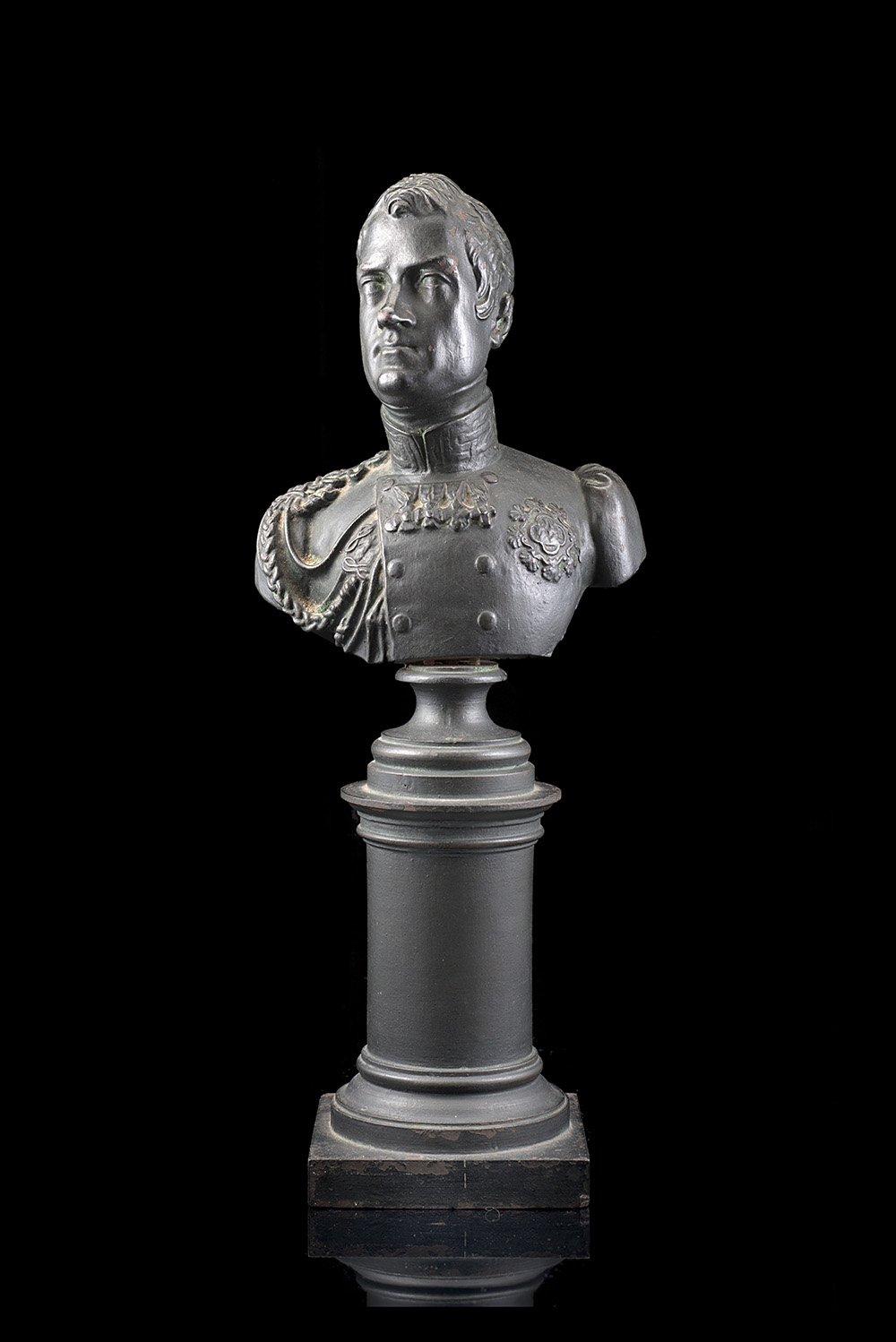 Bust of Carlo Alberto, king of Sardinia on column base.