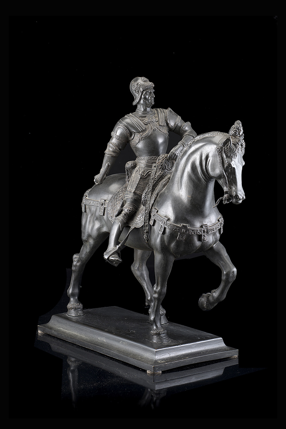 Statua equestre in bronzo. Riproduzione finemente cesellata del monumento al condottiero Bartolomeo Colleoni di Andrea Verrocchio che si trova in piazza San Zenipolo a Venezia.