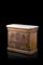 Modello di comò lastronato in noce a tre cassetti. Piano in marmo di forma...