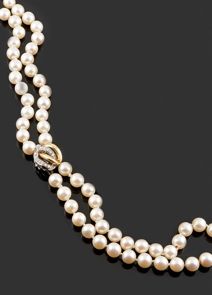 Lotto 741 | COLLANA DI PERLE Collana composta da un doppio filo di perle dal diam di mm...