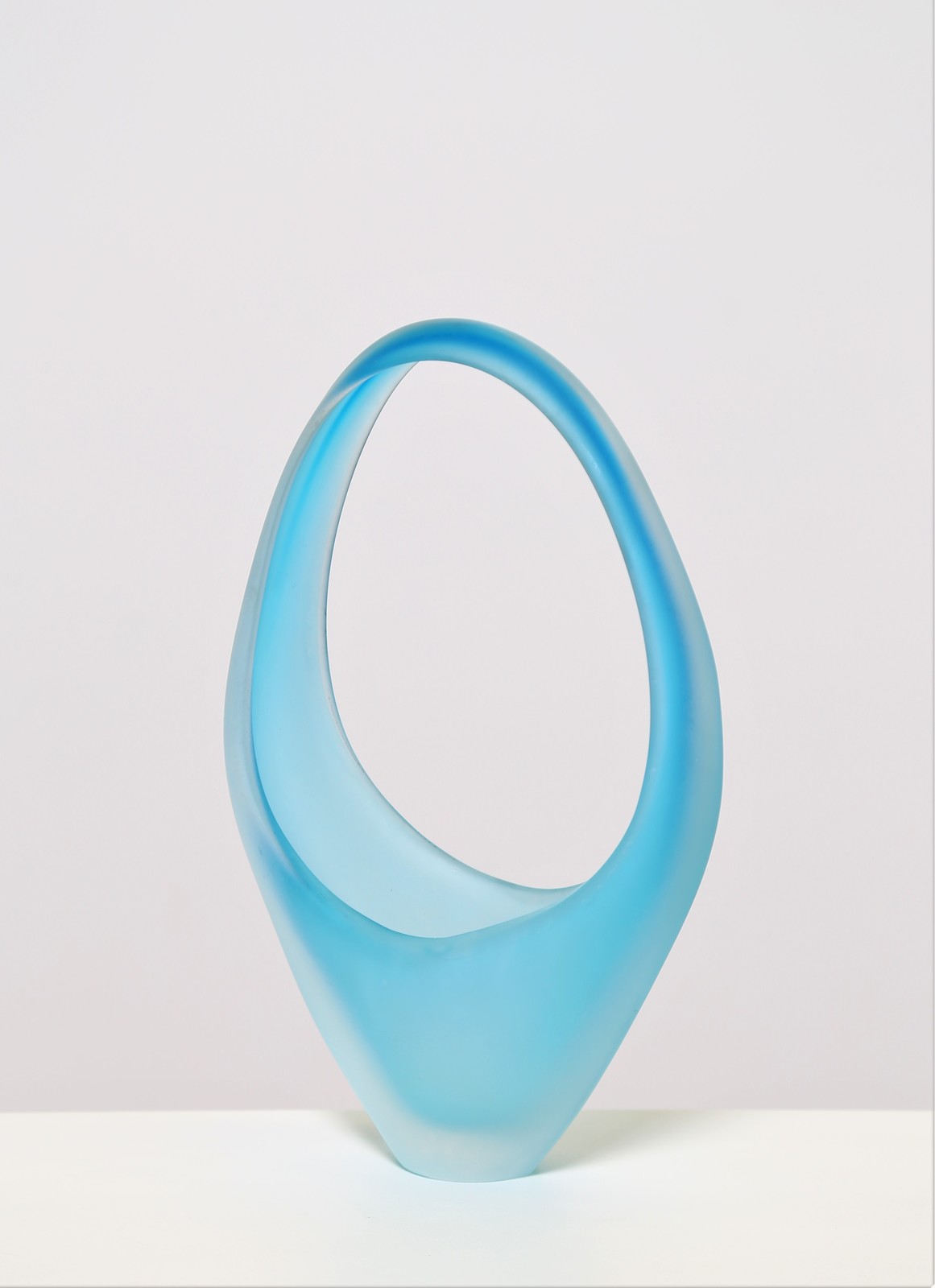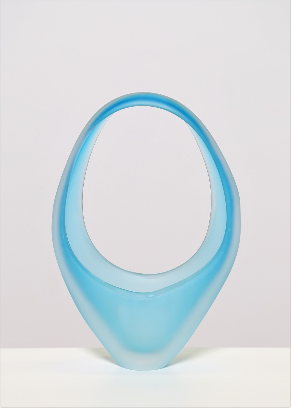 SEGUSO ARCHIMEDE (1909 - 1999) Blue and acid-etched submerged glass vase, 1960s. . . Cm 21,00 x 32,00 x 7,50.