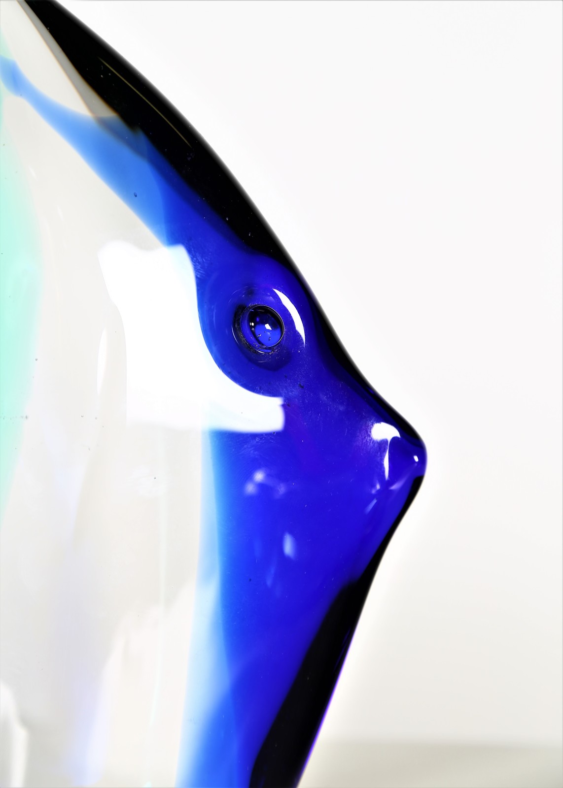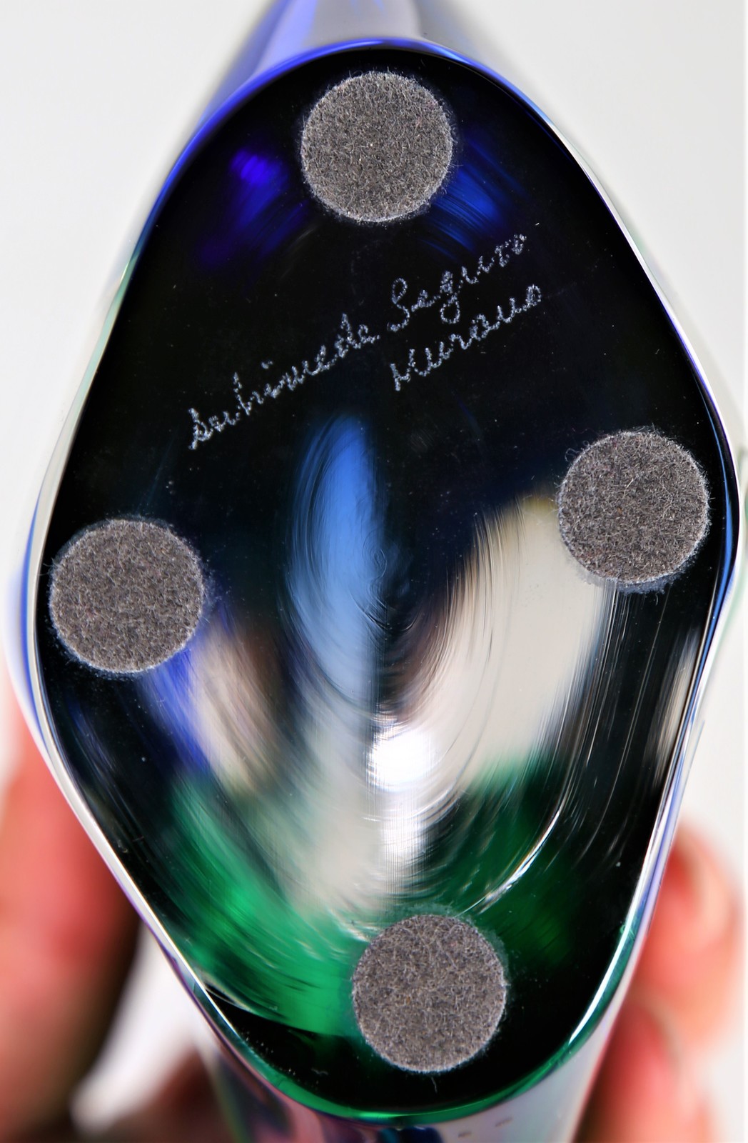 SEGUSO ARCHIMEDE (1909 - 1999) Pesce in vetro sommerso nei colori del verde e blu, anni 60. Firma presente. -. Cm 20,00 x 24,00 x 7,00.