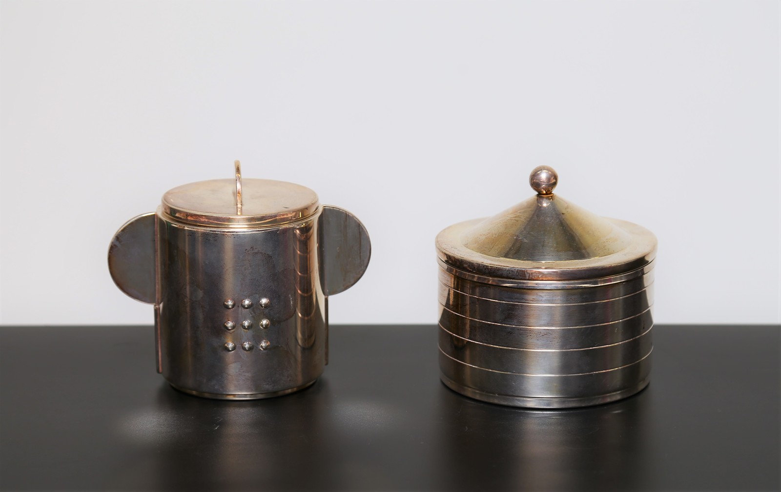 MUNARI CLETO Pair of silver sugar bowls, trademark and punches present . . . Measurements: h9,5 l8,5 d8,5 - h10 l8,5 d6,5