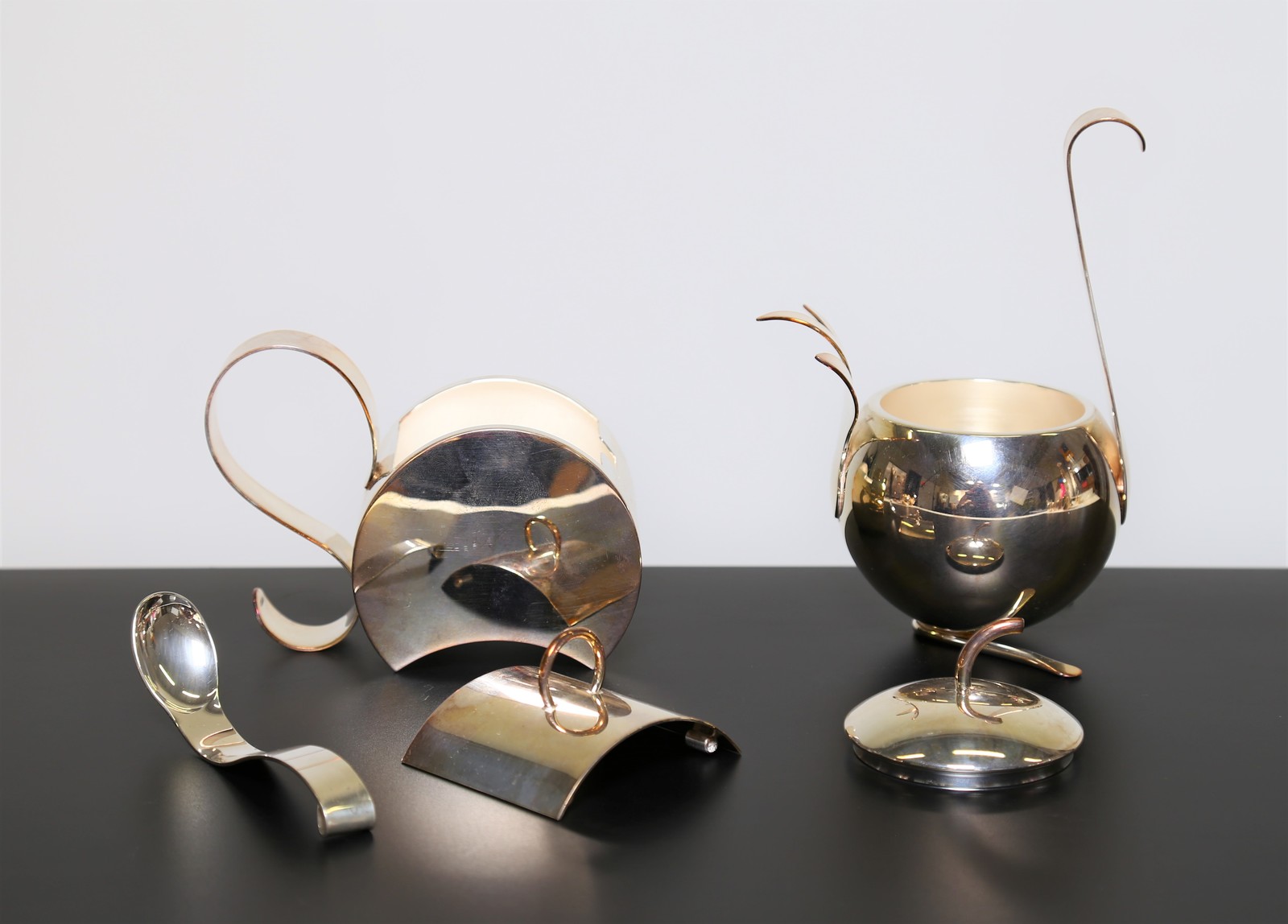 MUNARI CLETO Coppia zuccheriere zoomorfe in argento, marchio e punzoni presenti, anni 80. -. . Misure: H 11 L 17 P 7 - H 18 L 13 P 9,5