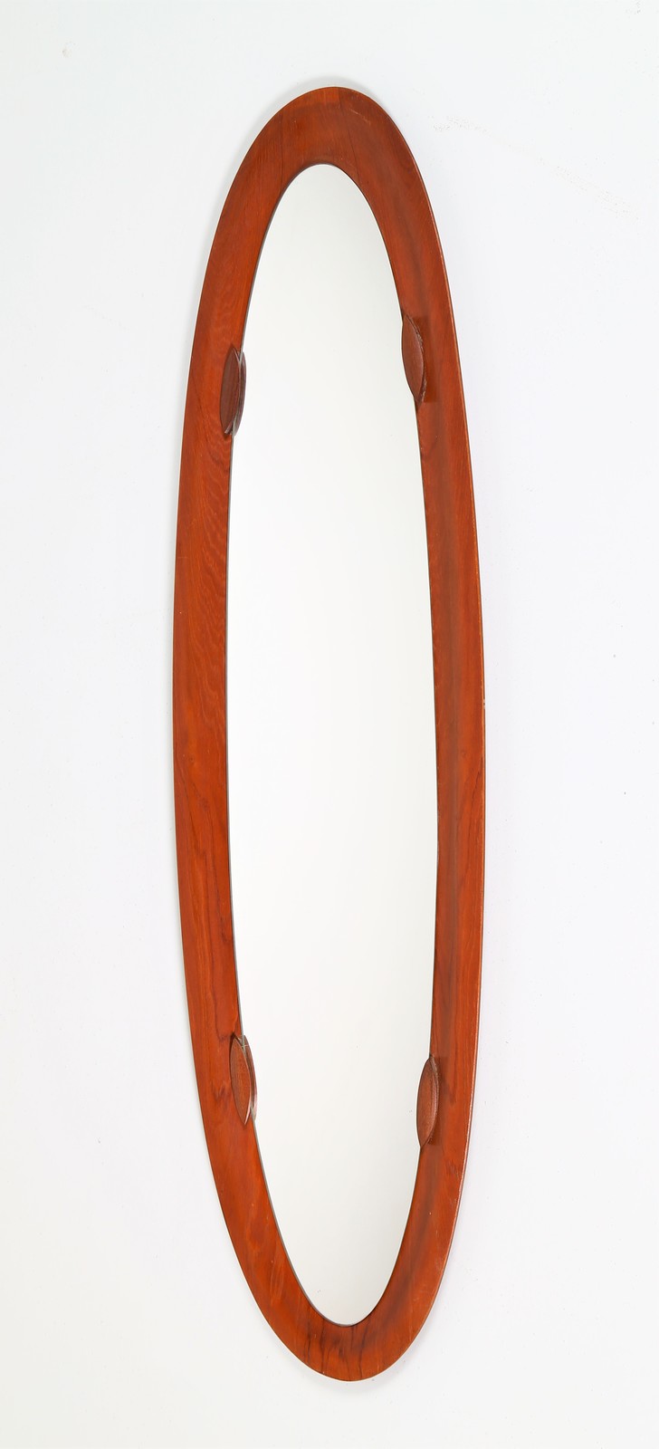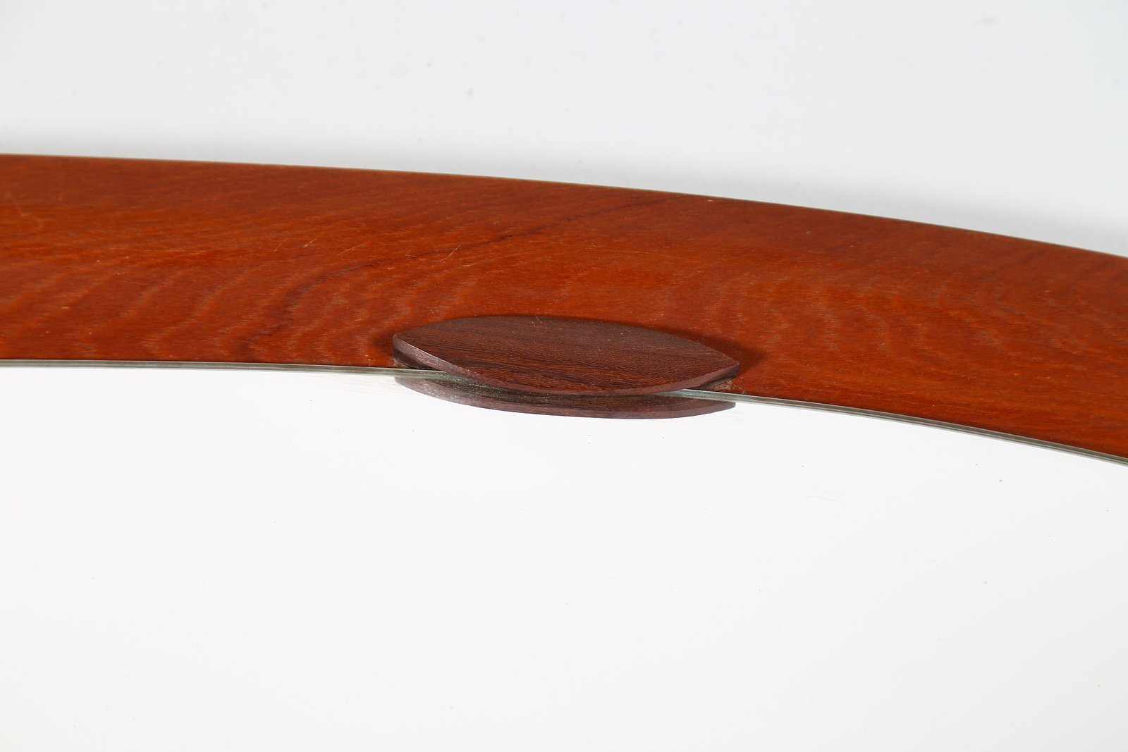 MANIFATTURA DANESE Specchio da parete in legno e vetro, anni 60. -. Cm 39,50...