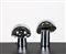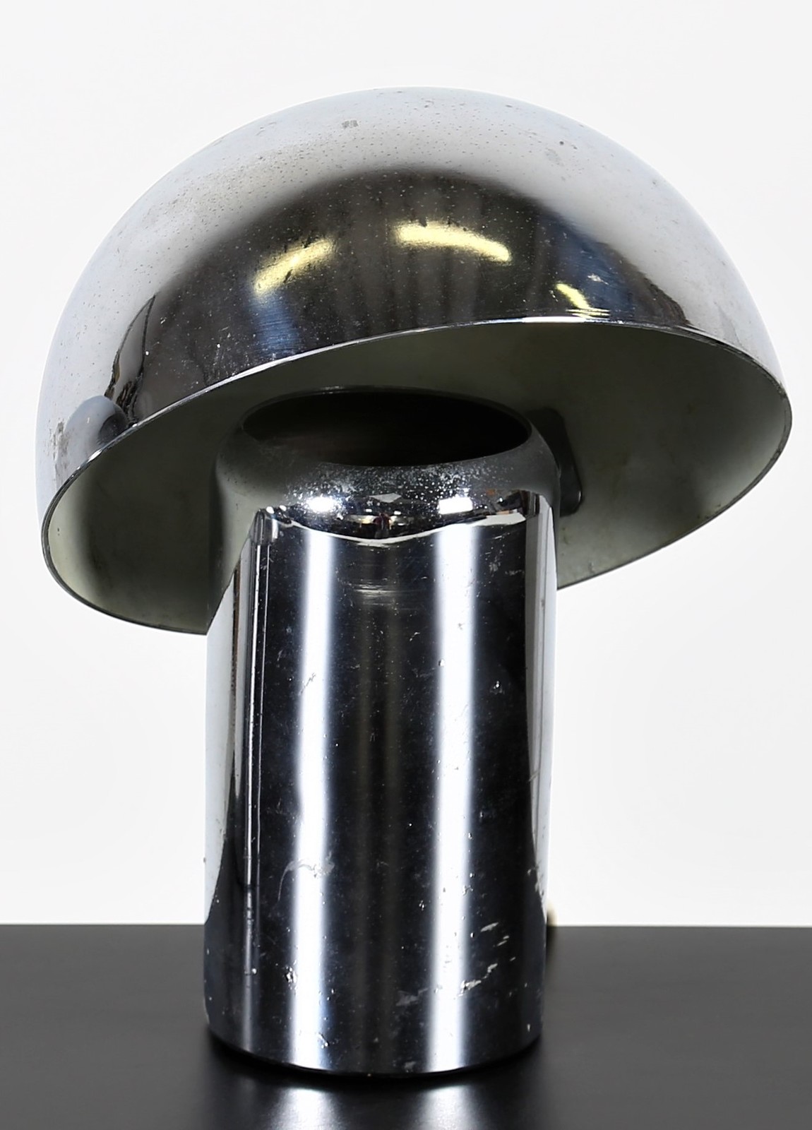 MANIFATTURA ITALIANA Coppia di lampade da comodino in metallo cromato, anni 70. -. Cm 18,00 x 22,00 x 18,00.