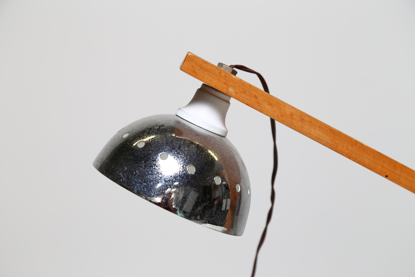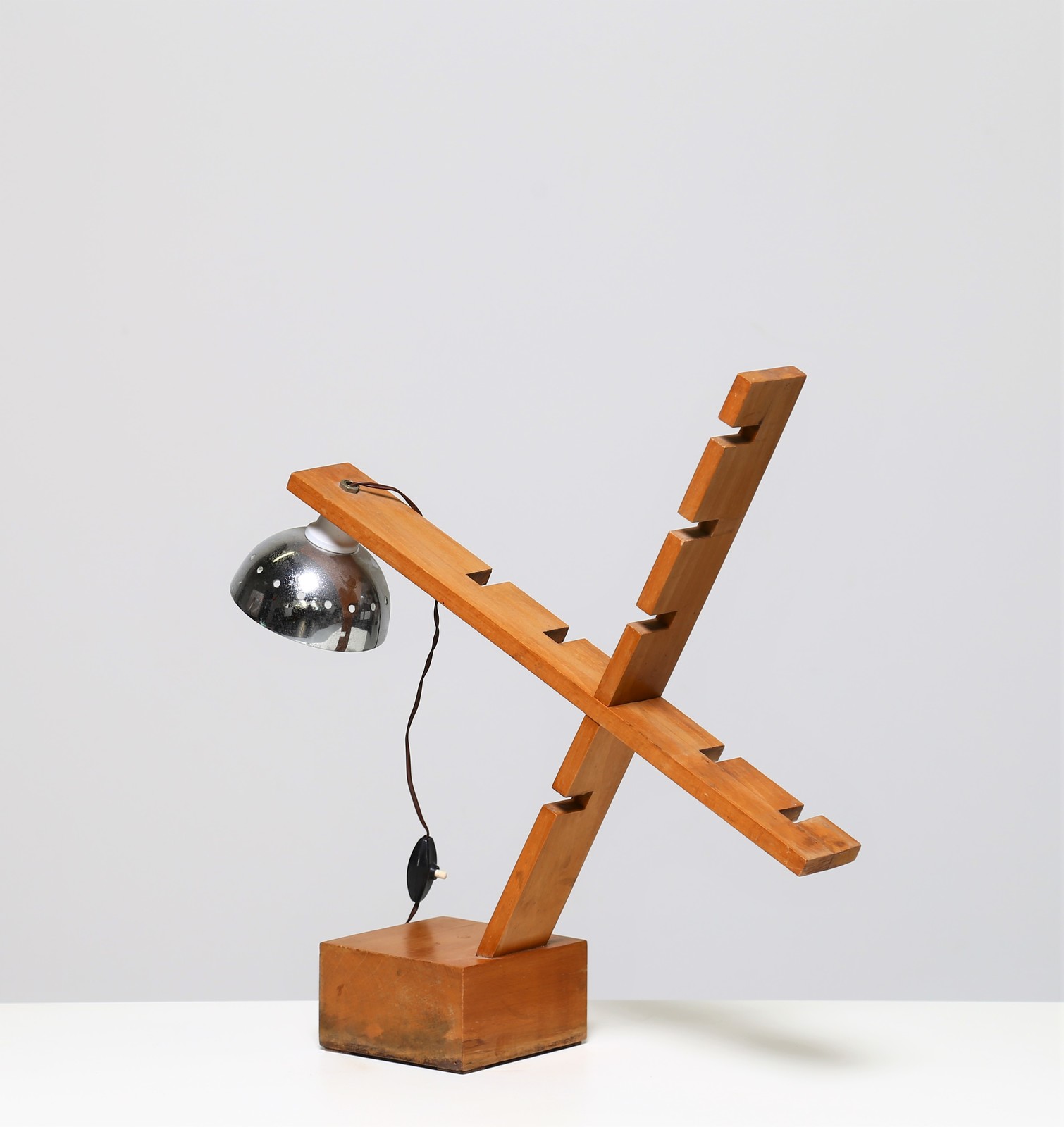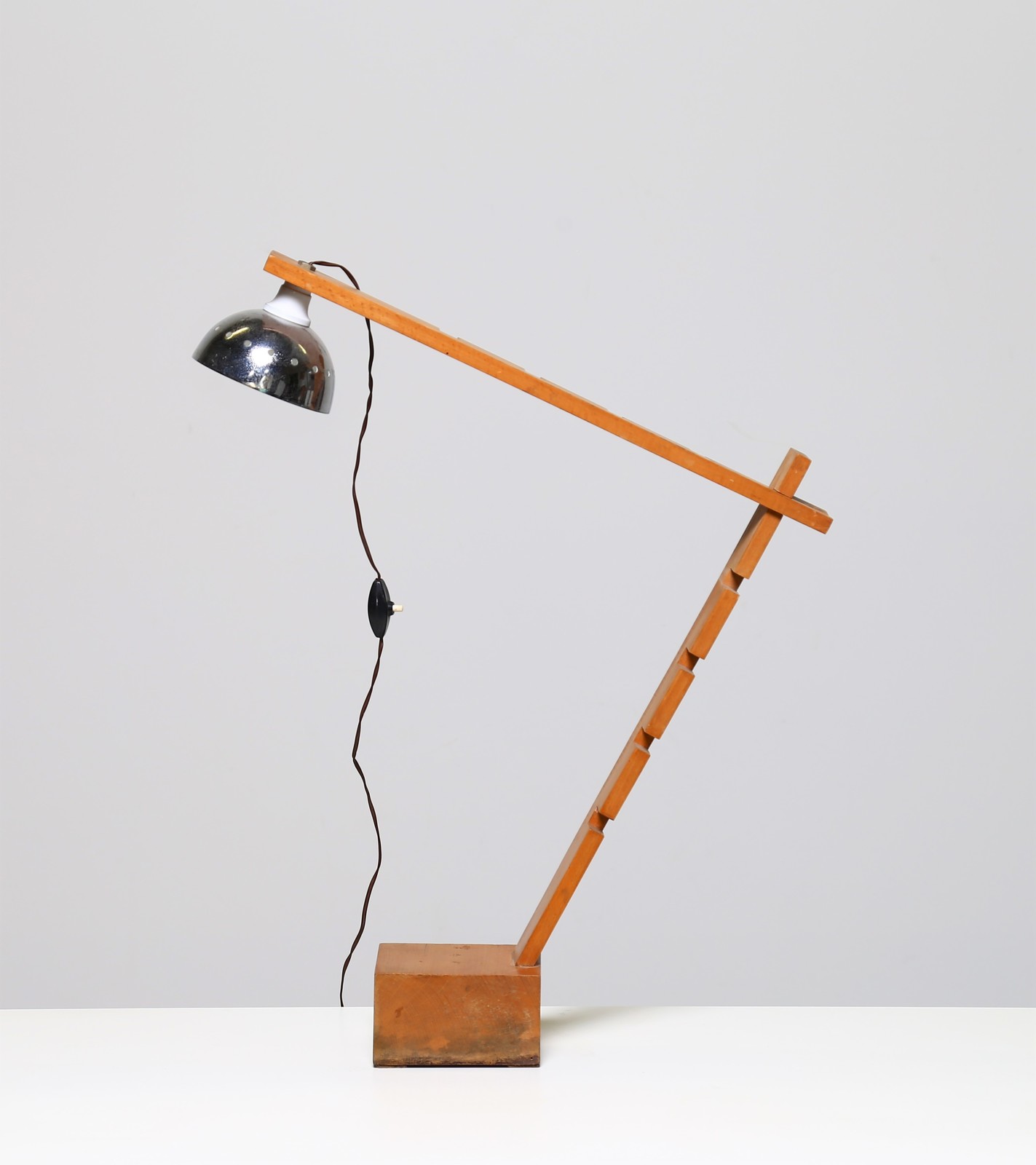 MANIFATTURA ITALIANA Lampada da tavolo in legno e metallo cromato, anni 60. -. Cm 53,00 x 68,00 x 14,00.