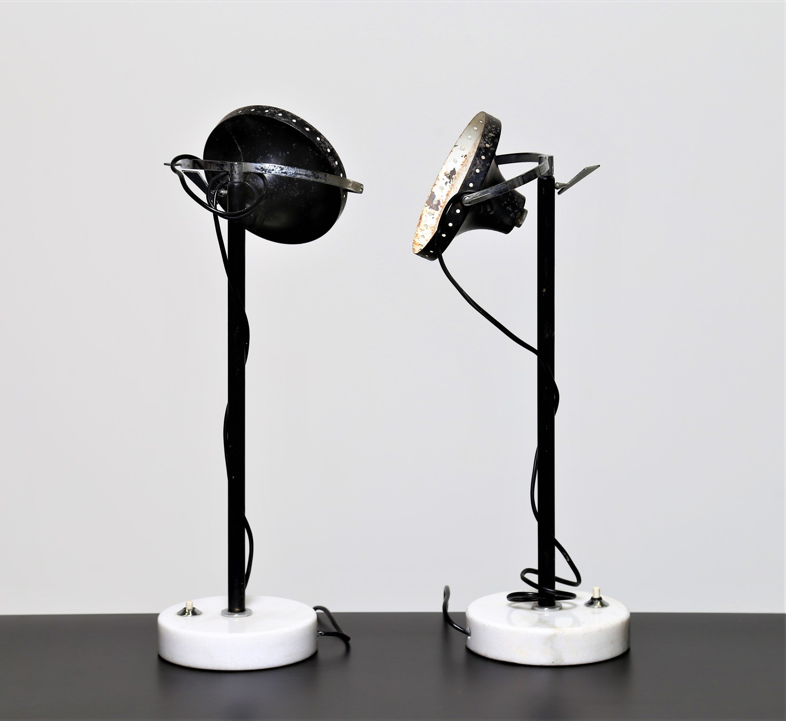 STILUX Pair of lacquered and chromed metal adjustable table lamps with marble base, 1960s. . Cm 15,00 x 44,00 x 13,00.