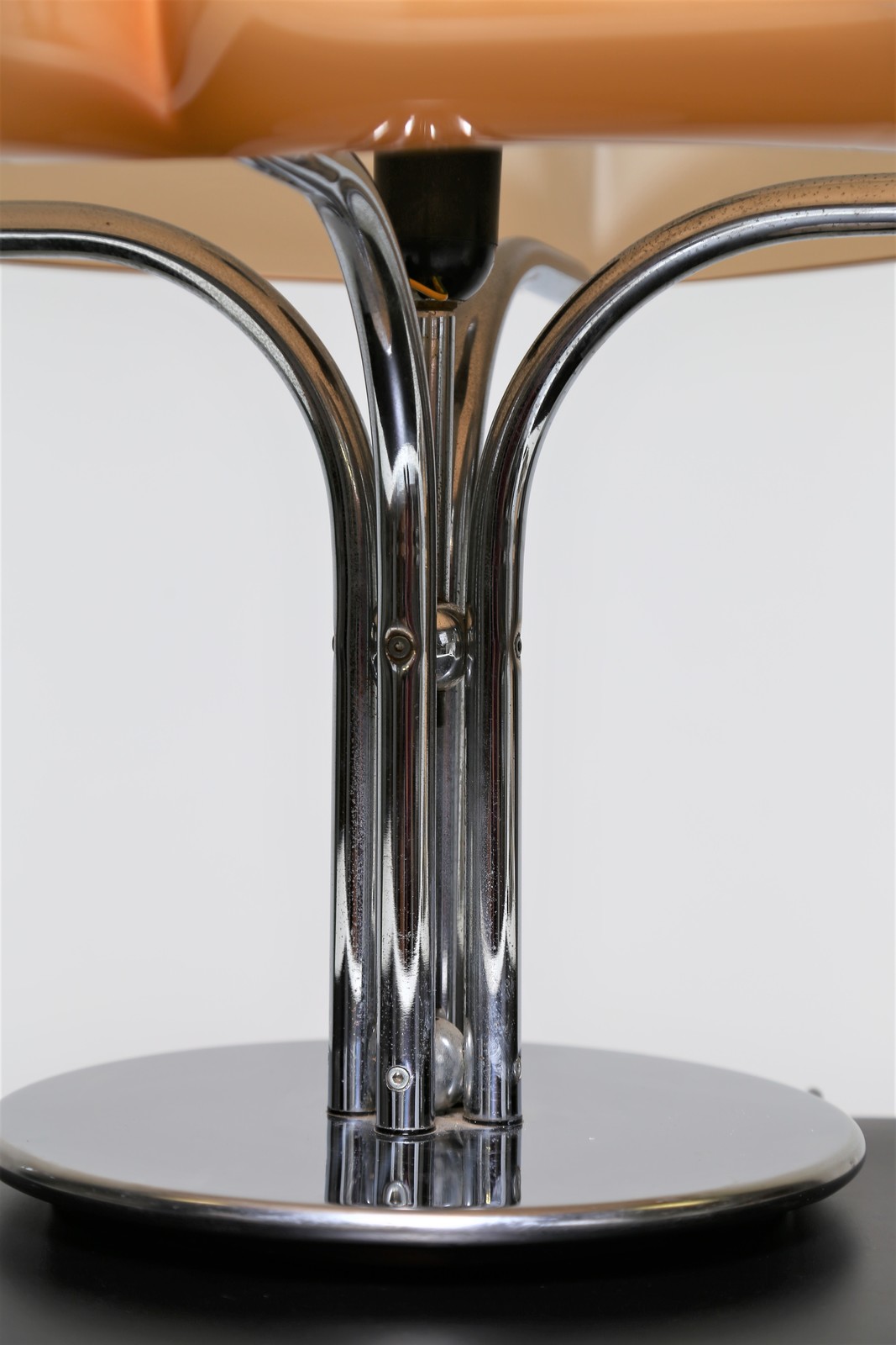 AULENTI GAE (1927 - 2012) Chromed metal and perspex table lamp, mod. Quadrifoglio for Harvey Guzzini, 1970s. . Cm 52,00 x 52,00 x 52,00.