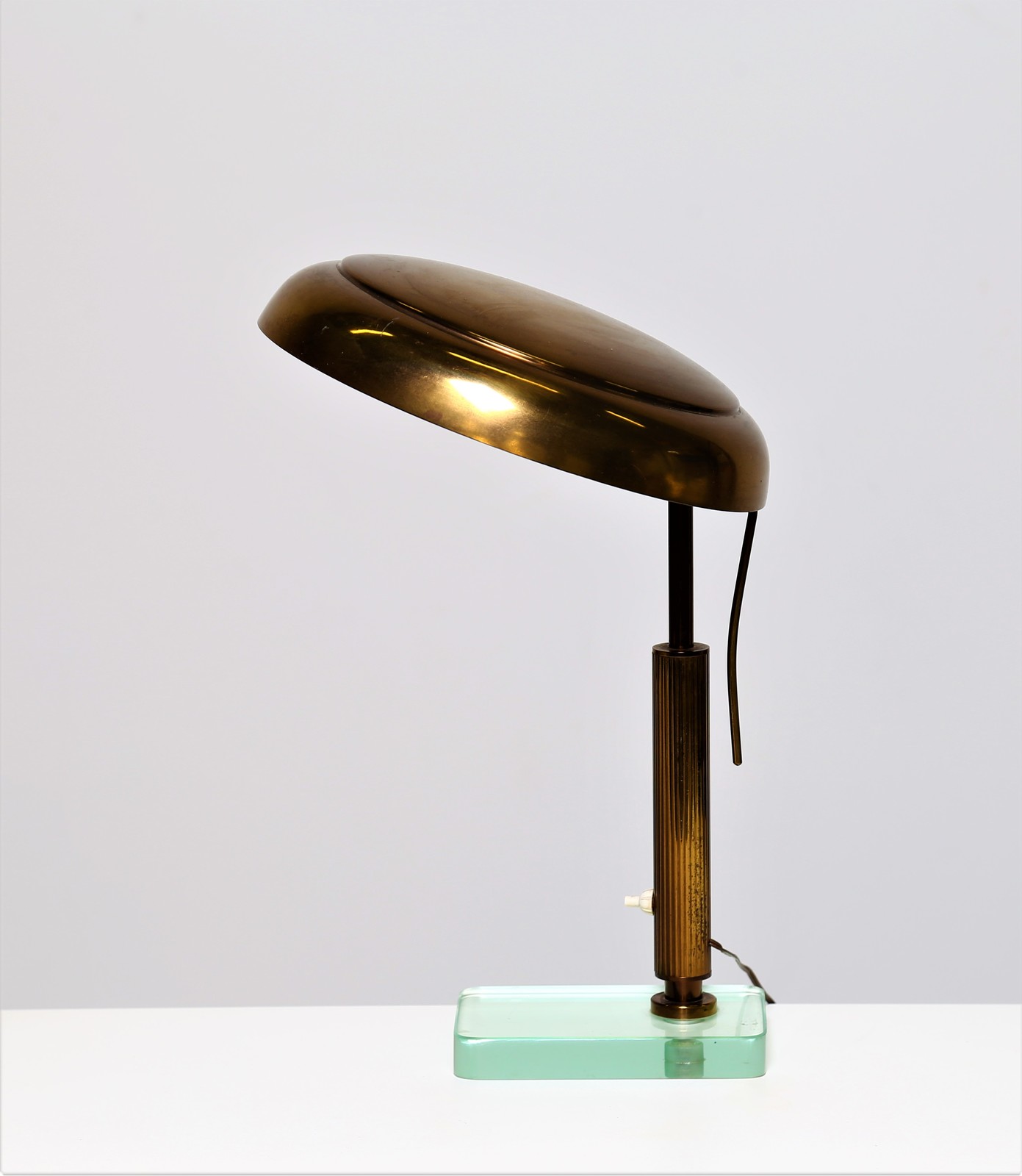 MANIFATTURA ITALIANA Lampada da tavolo in ottone e cristallo, anni 50. -. Cm...