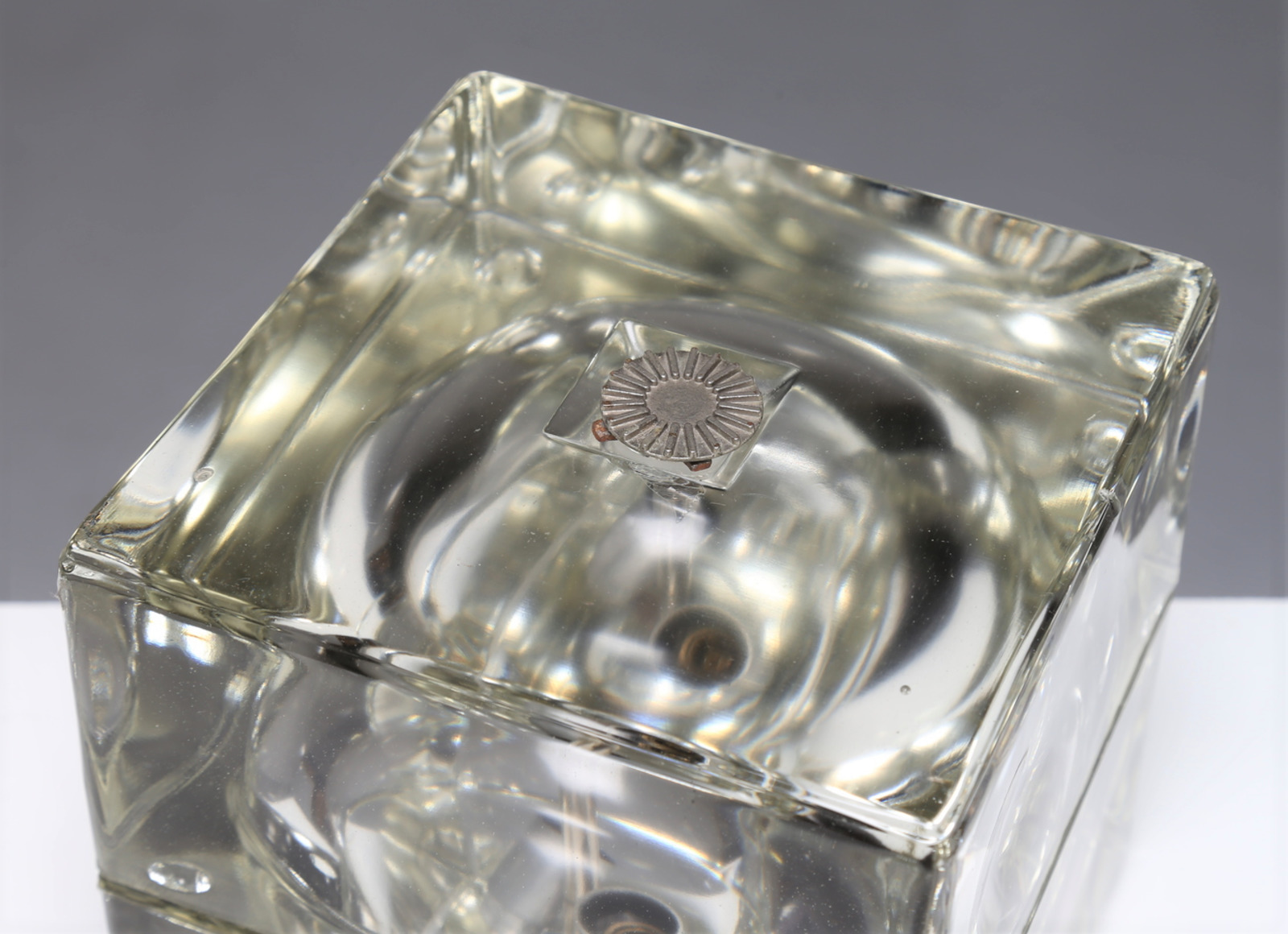MENDINI ALESSANDRO (n. 1931) Solid glass 1970s "Cubosphere" lamp, for Nizzoli. . Cm 15,70 x 17,00 x 15,70.