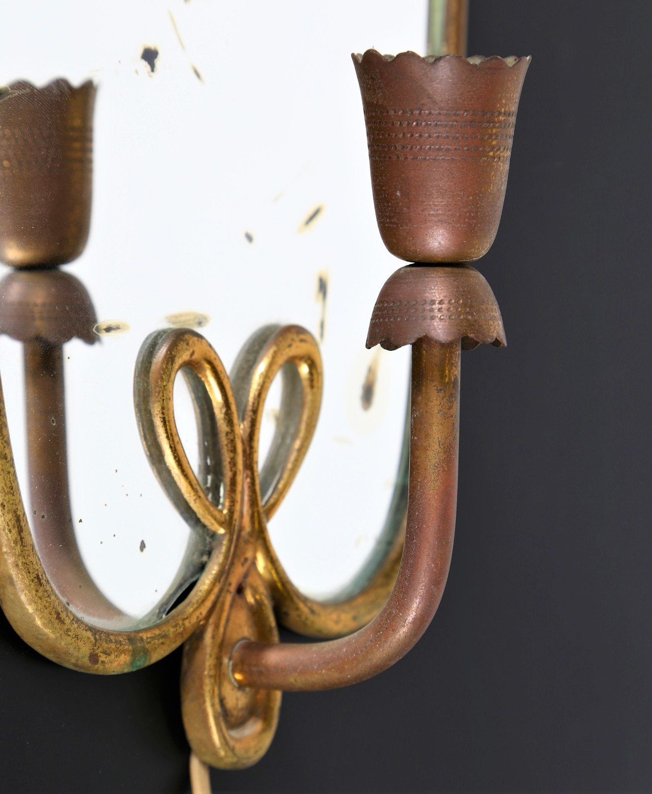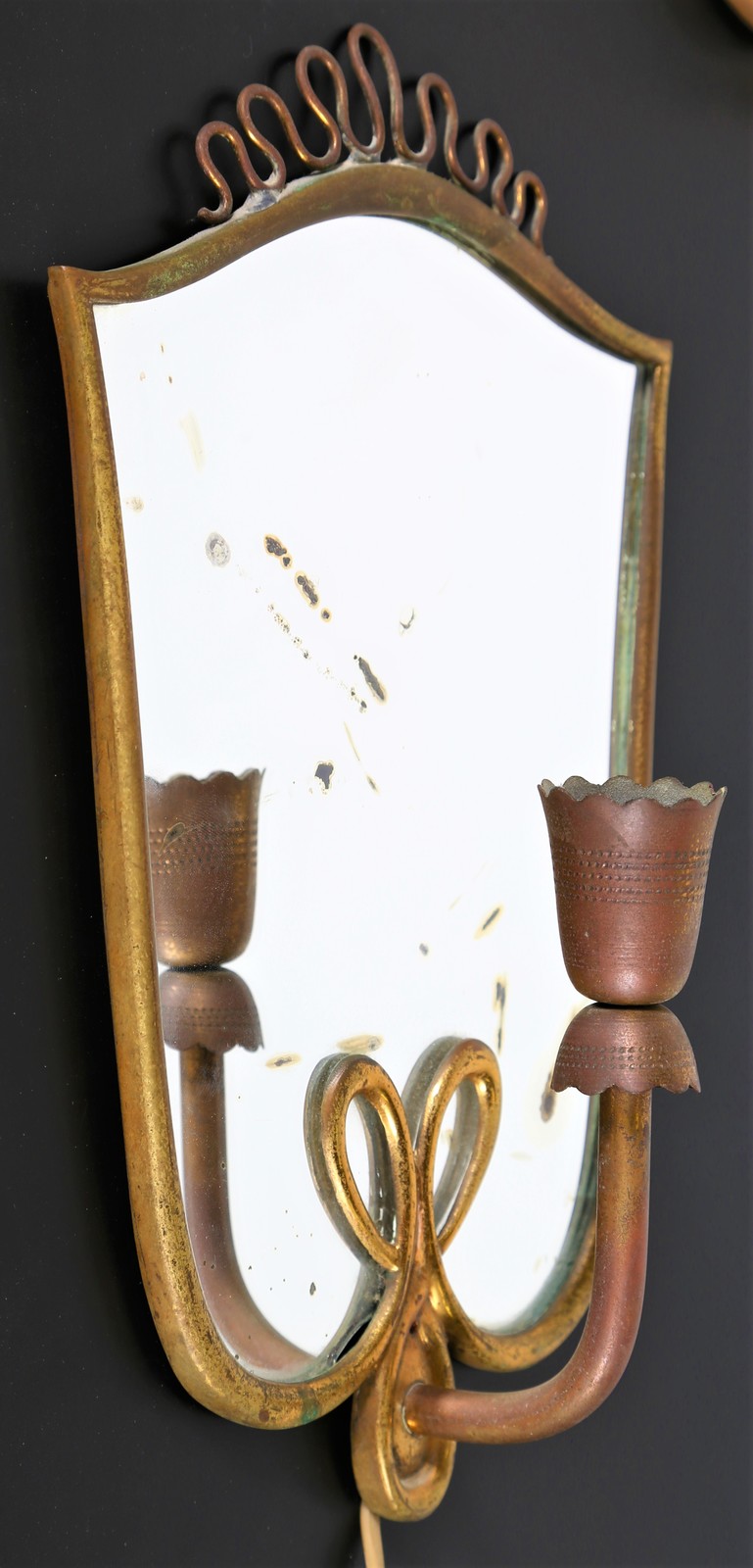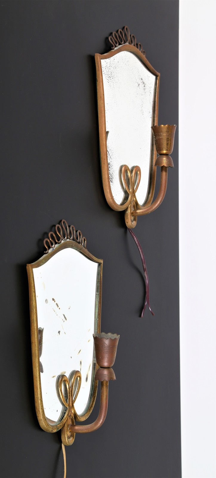 MANIFATTURA ITALIANA Coppia appliques a specchio in ottone e vetro. -. Cm...