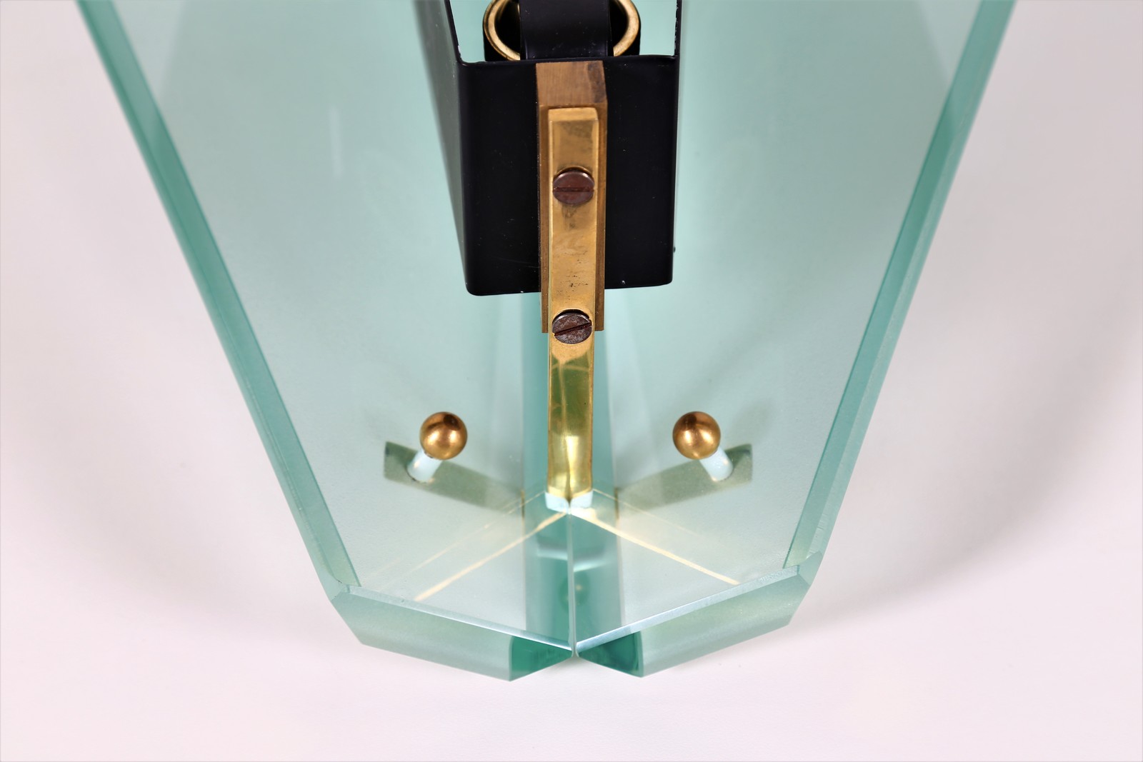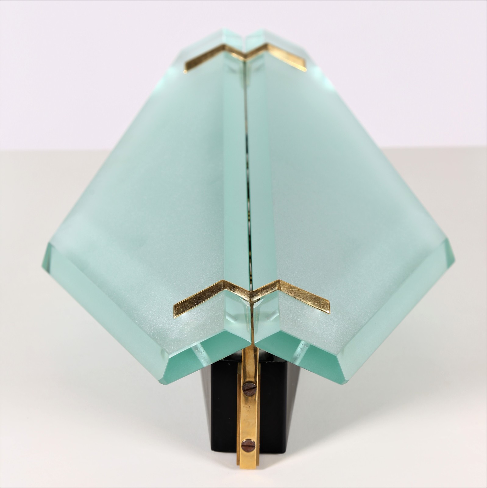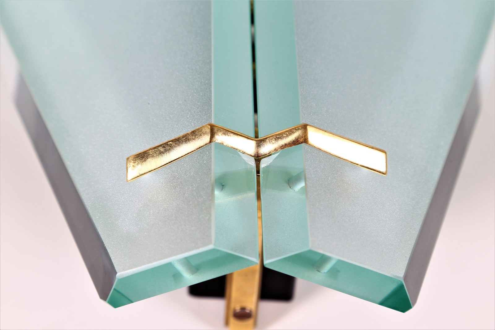 INGRAND MAX (1908 - 1969) Coppia di applique in ottone smaltato, ottone e cristallo sagomato satinato e molato, mod. 1943 per Fontana Arte. -. Cm 32,00 x 50,00 x 13,50.