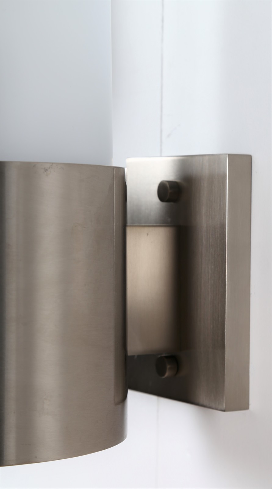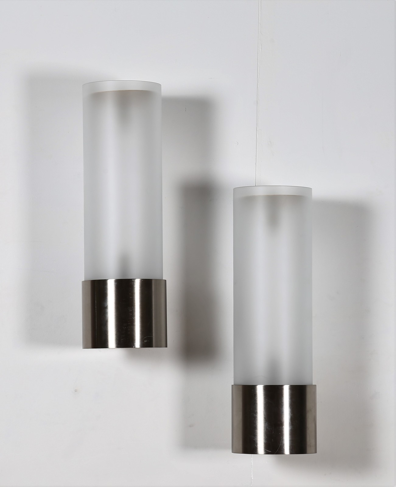 LELLI ANGELO Coppia di appliques in metallo satinato, vetro opalino e metallo...