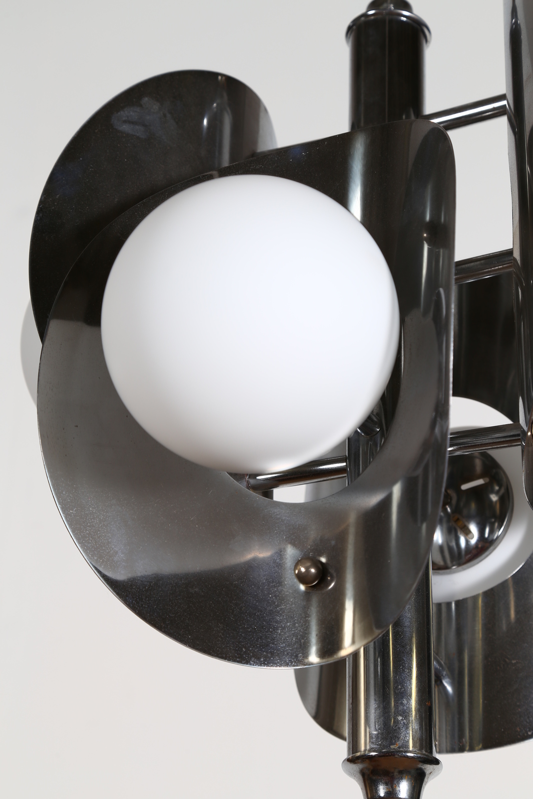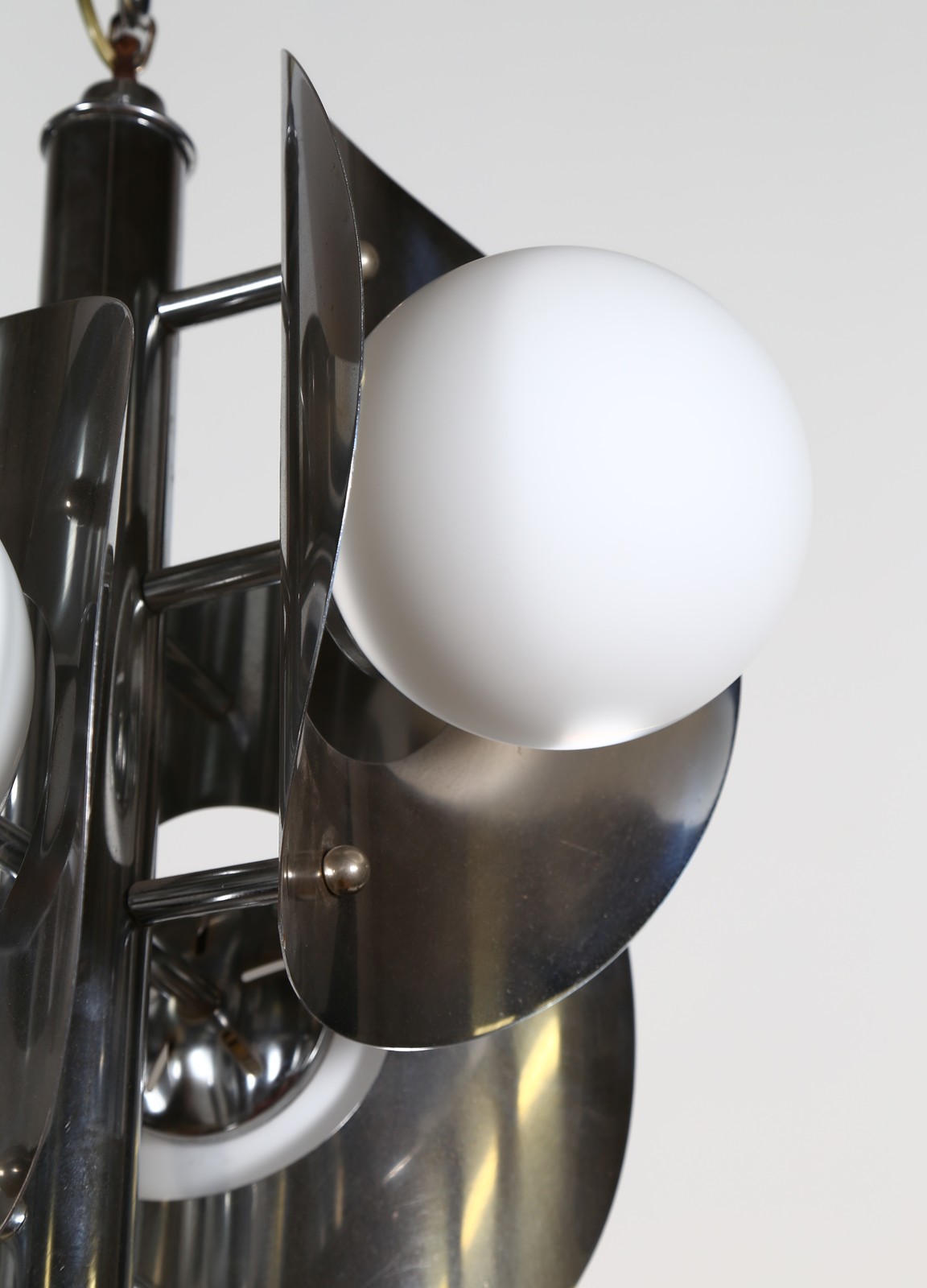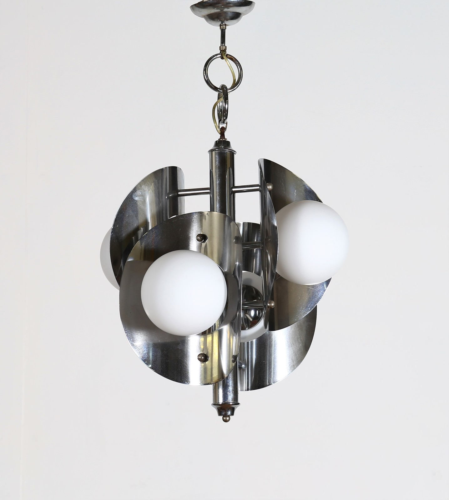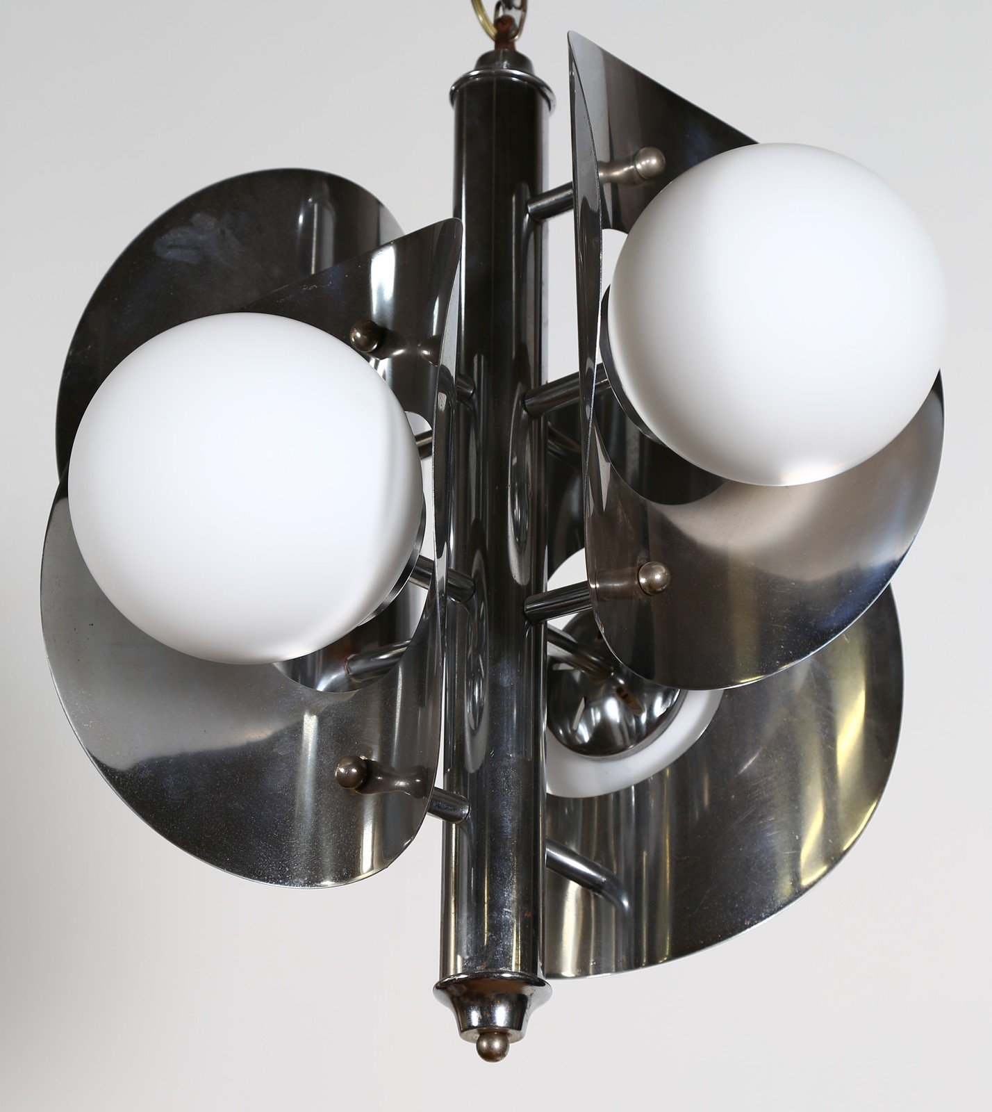 SCIOLARI GAETANO Lampadario quattro luci in metallo cromato, anni 70. -. Cm...