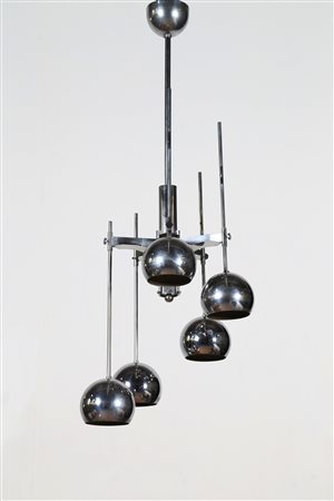 MANIFATTURA ITALIANA Lampadario cinque luci regolabili in metallo cromato, anni 60. -. Cm 48,00 x 110,00 x 48,00.