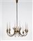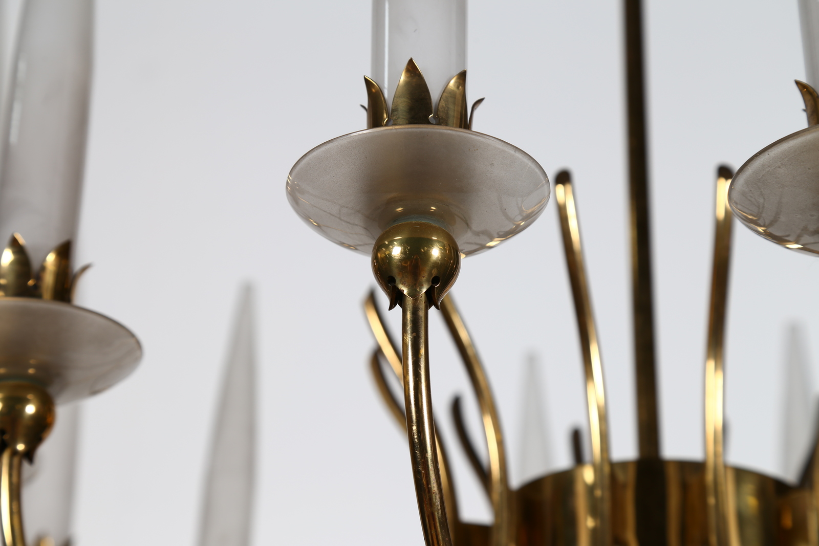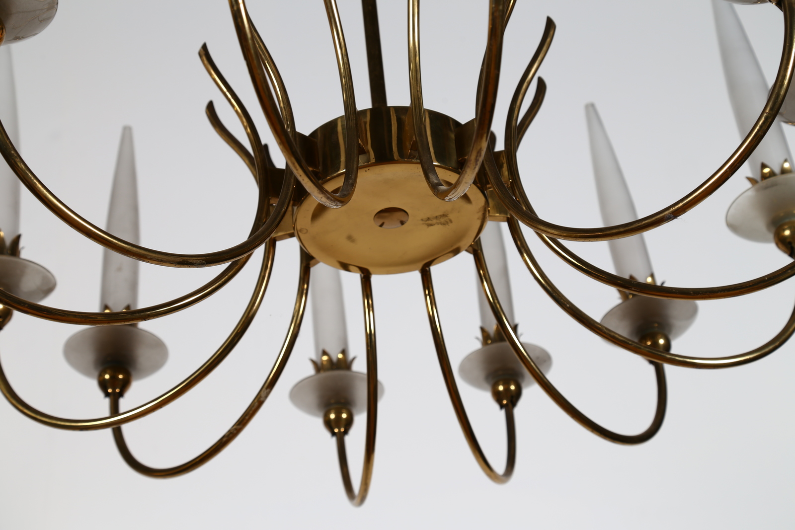 ARREDOLUCE Lampadario dodici luci in ottone e vetro satinato, anni 50. -. Cm...