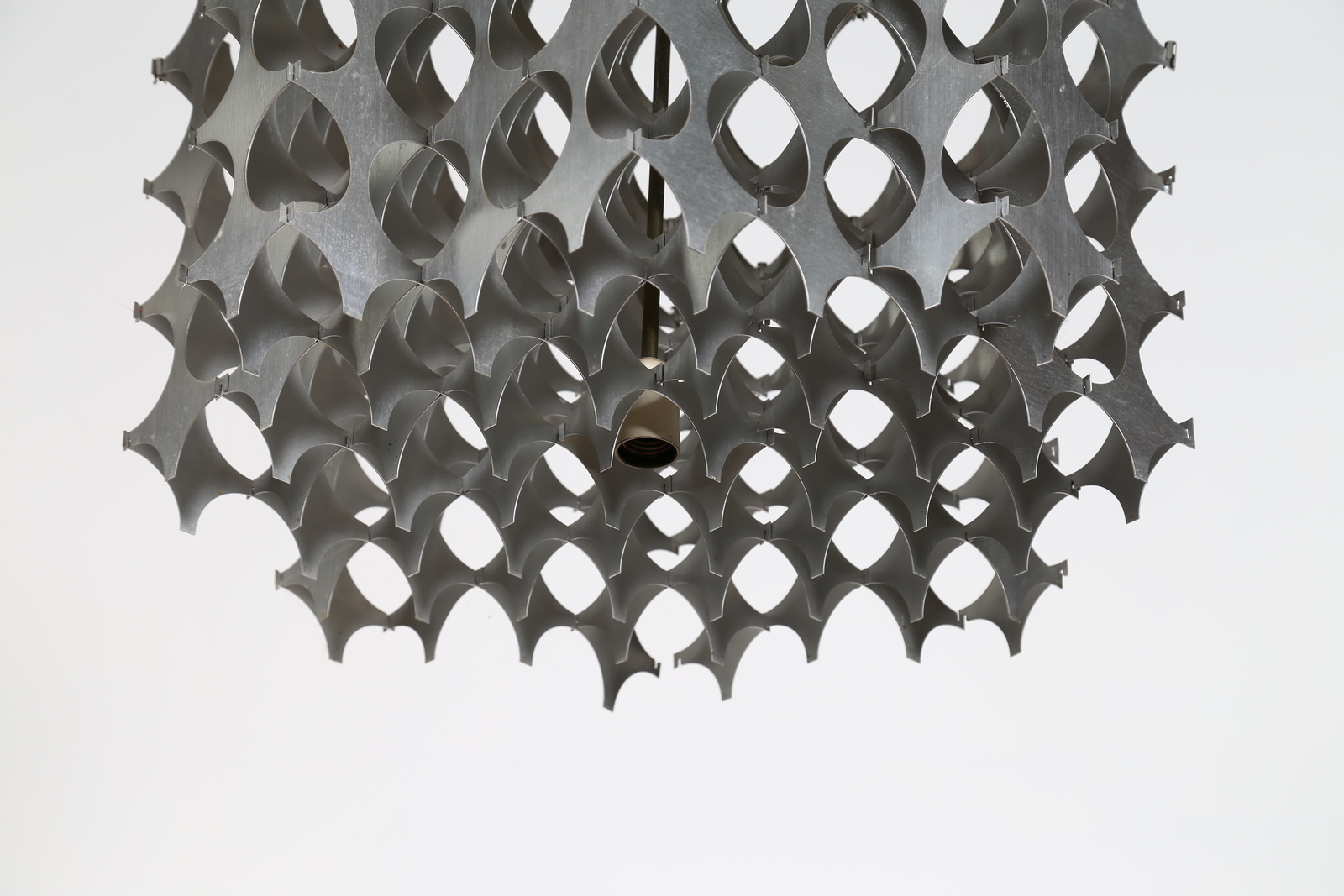 MARENCO MARIO Lampada a sospensione in metallo anodizzato fustellato, per Artemide 1968