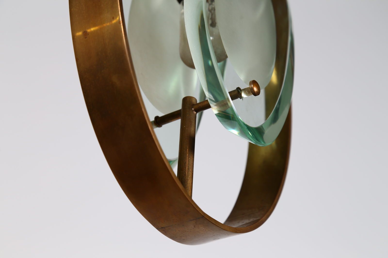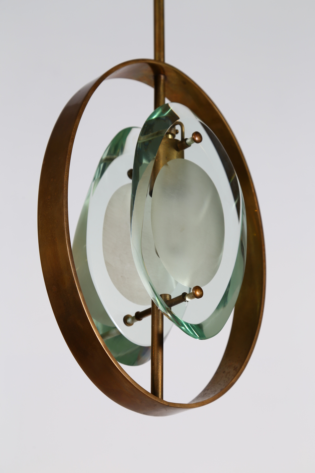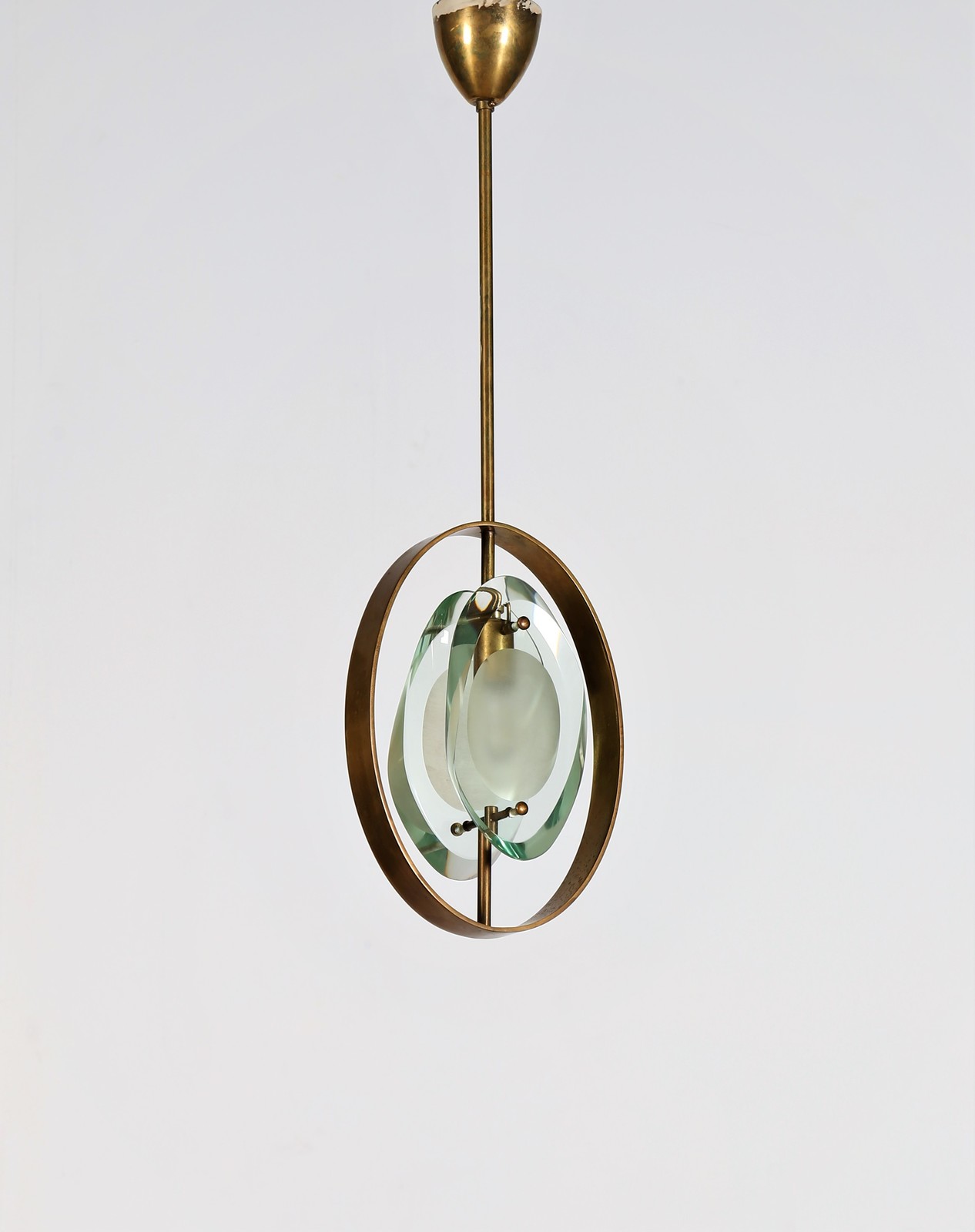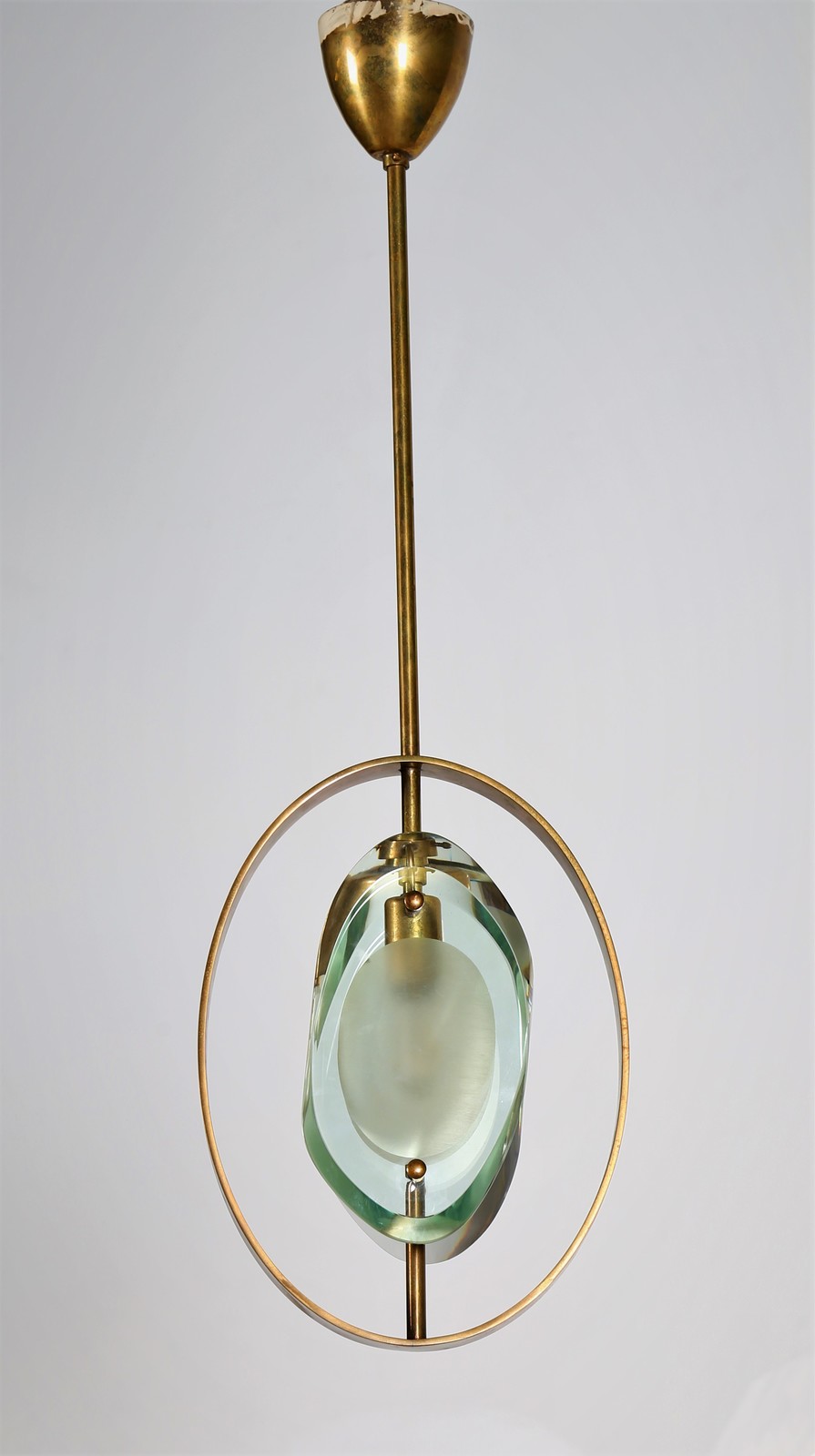 INGRAND MAX (1908 - 1969) Lampada a sospensione in ottone e cristallo molato, mod. 1953. -. Cm 22,00 x 70,00 x 10,00.