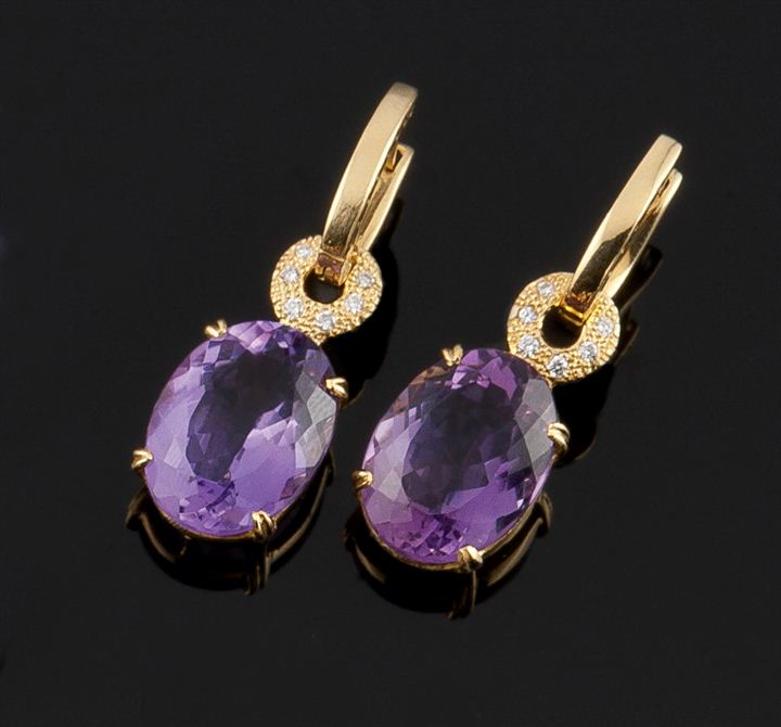 taglio brillante per complessivi ct 0,17 ca, terminanti con due ametiste pendenti di taglio ovale