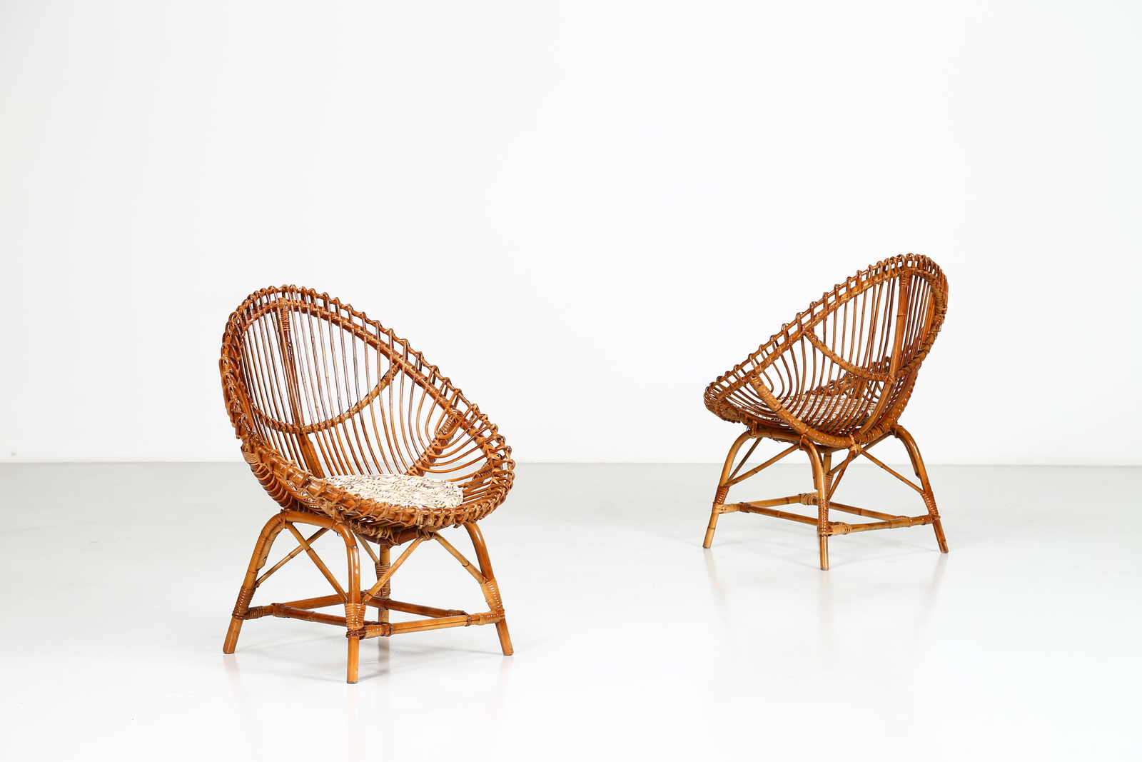 BONACINA 1889 Pair of wicker egg chairs, 1960s. . Cm 66,00 x 84,00 x 68,00. Good condition