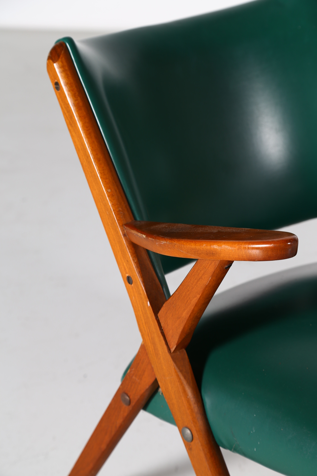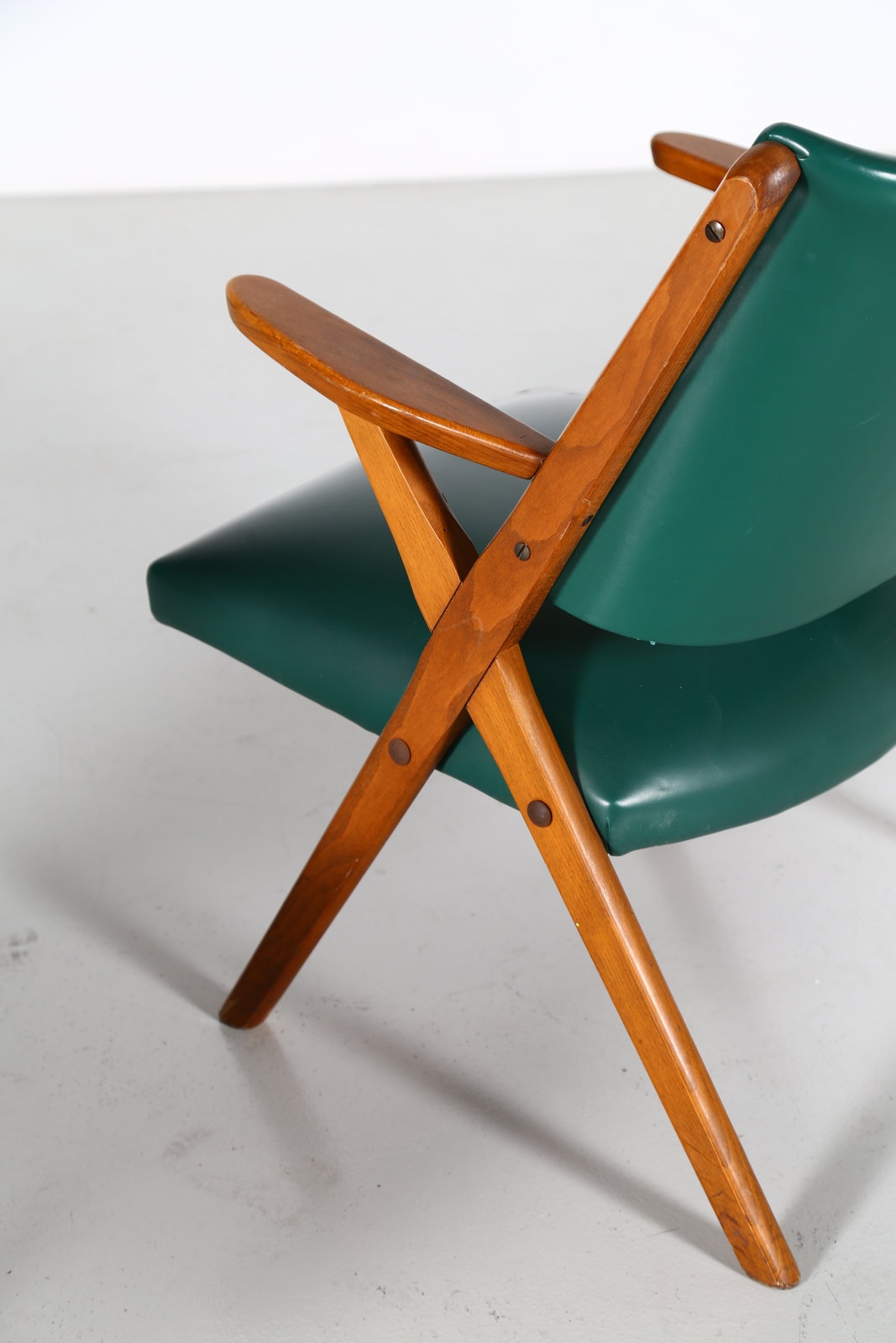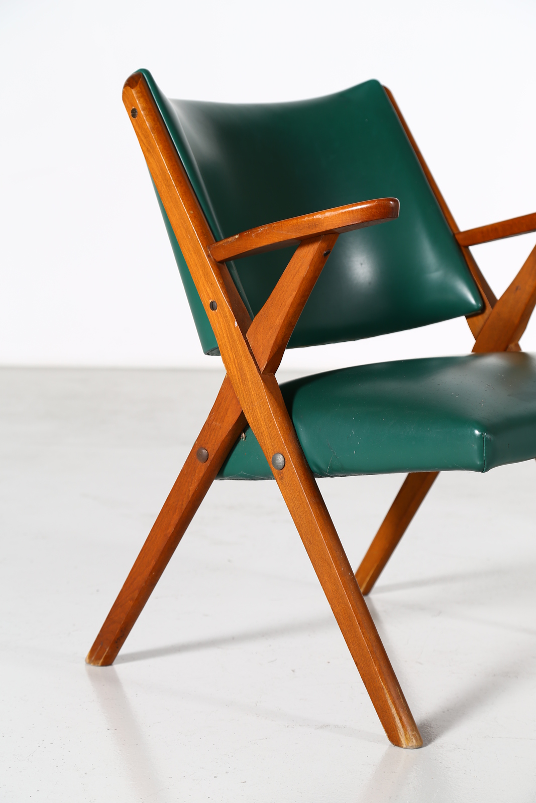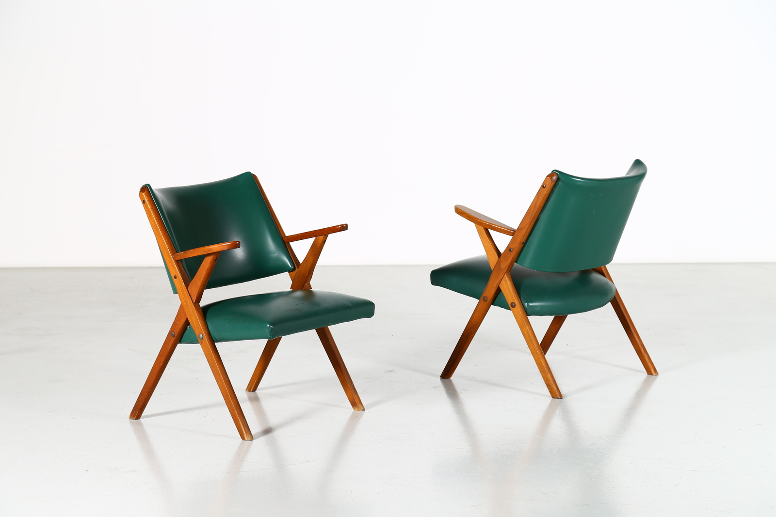 MOBILI DAL VERA Pair of wood and skai easy chairs, 1960s. . Cm 58,00 x 71,00 x 62,00.