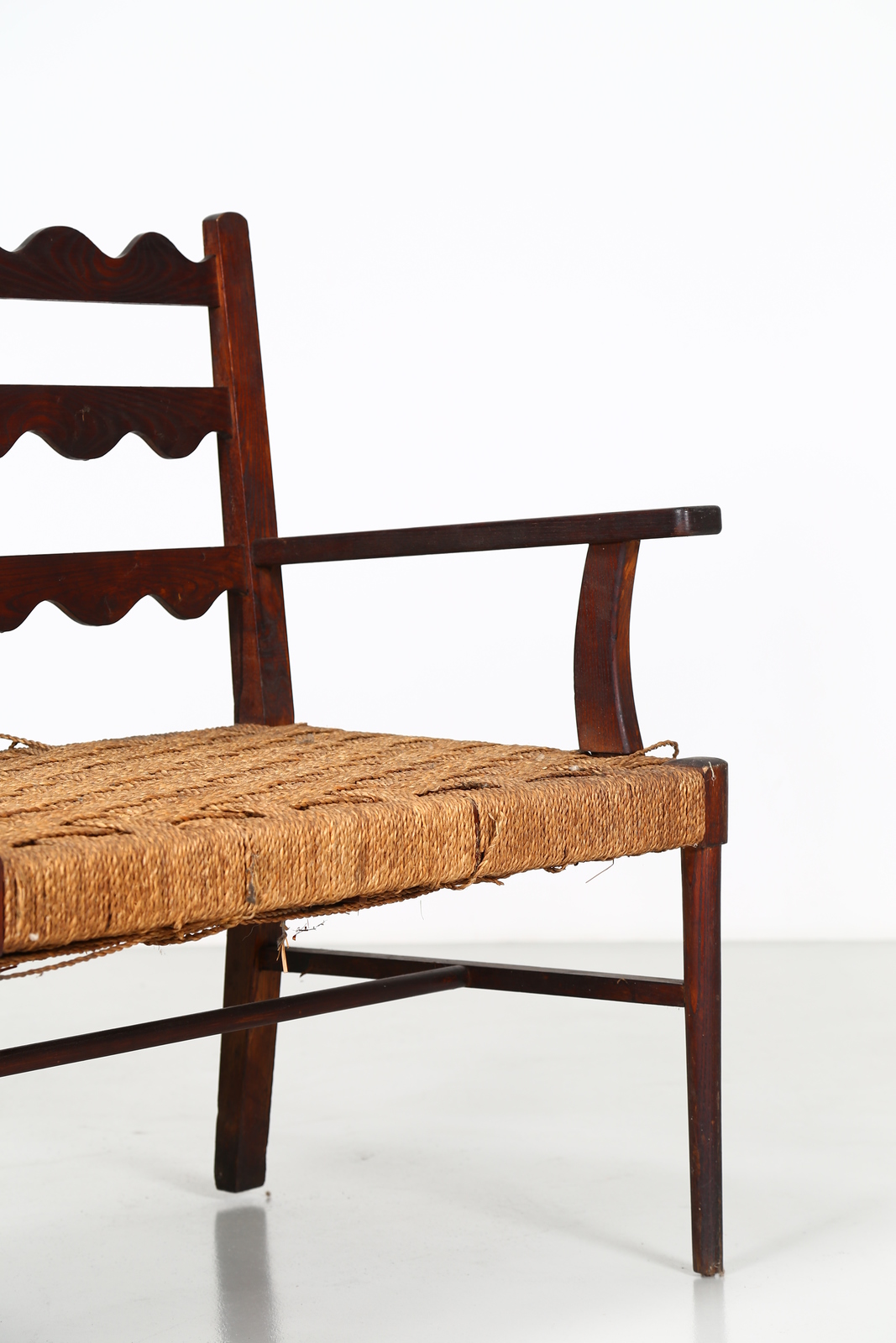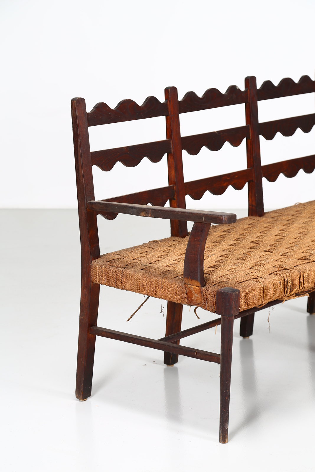 BUFFA PAOLO (1903 - 1970) Four-seater wood and straw bench, 1950s. . Cm 183,00 x 95,00 x 60,00.