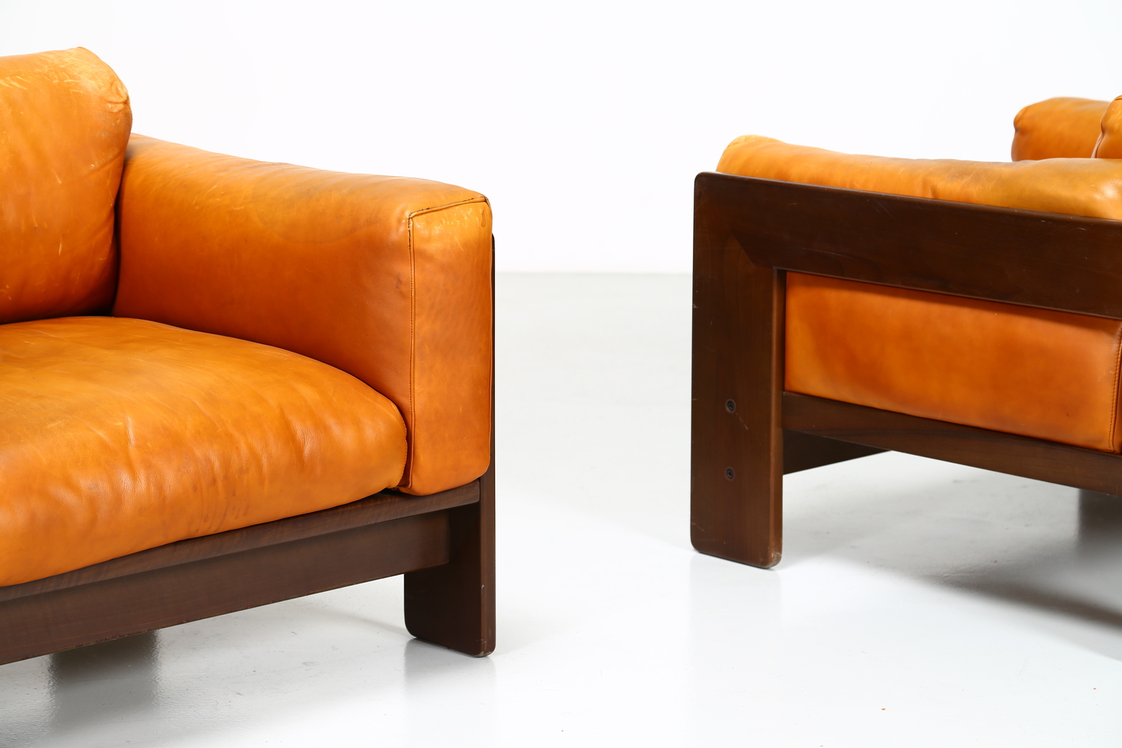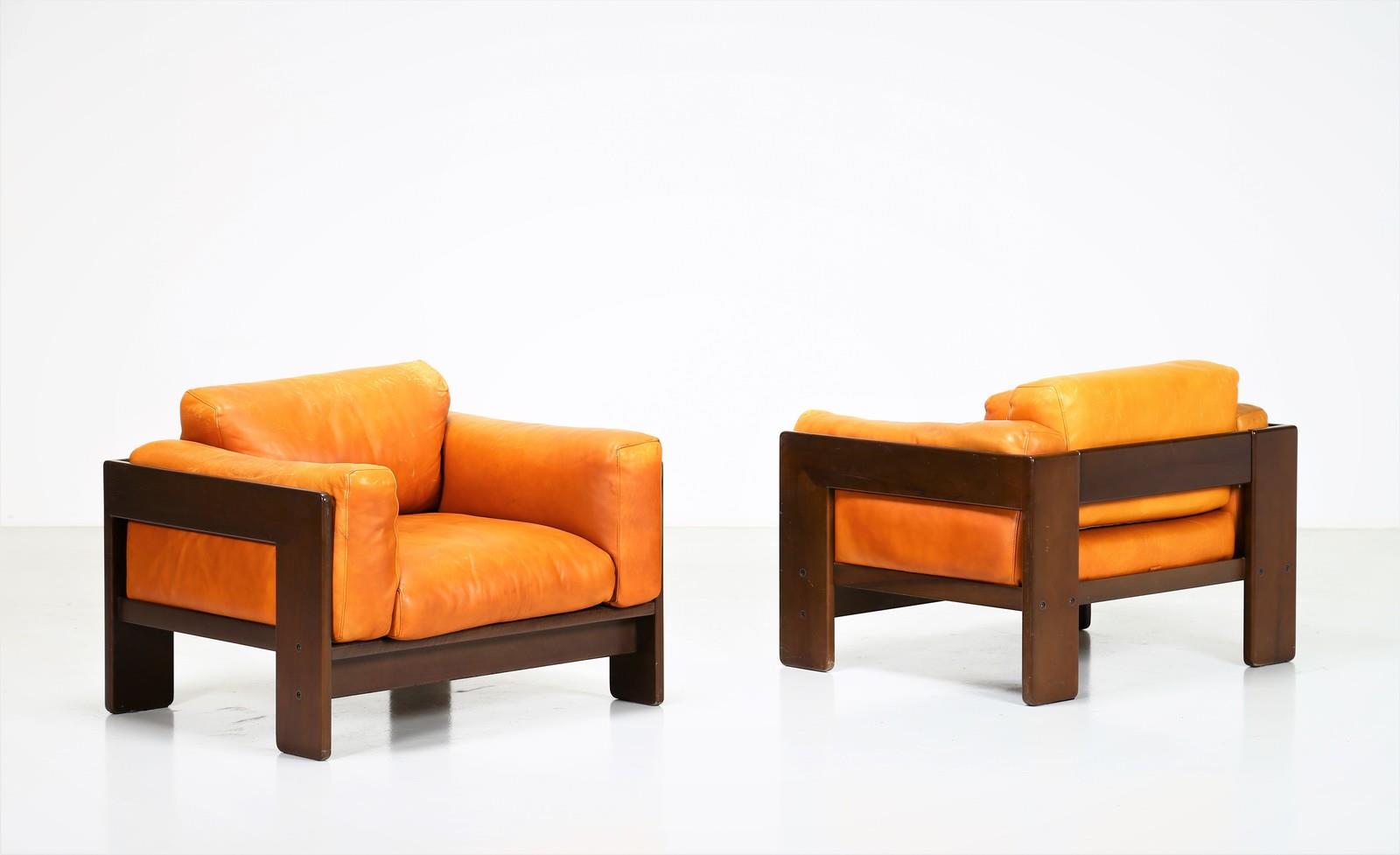 SCARPA AFRA & TOBIA Coppia di poltrone in noce e pelle, mod. Bastiano per...
