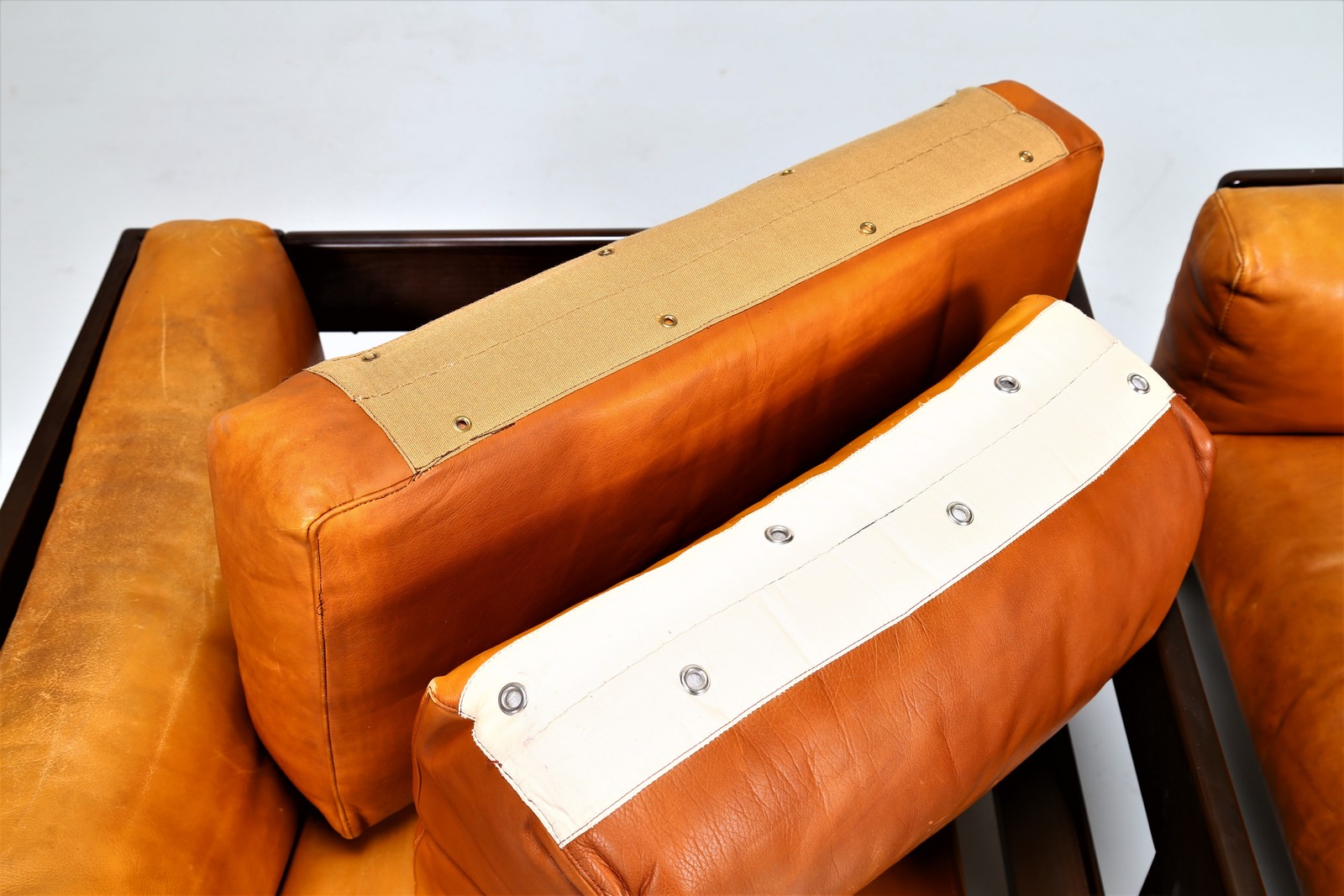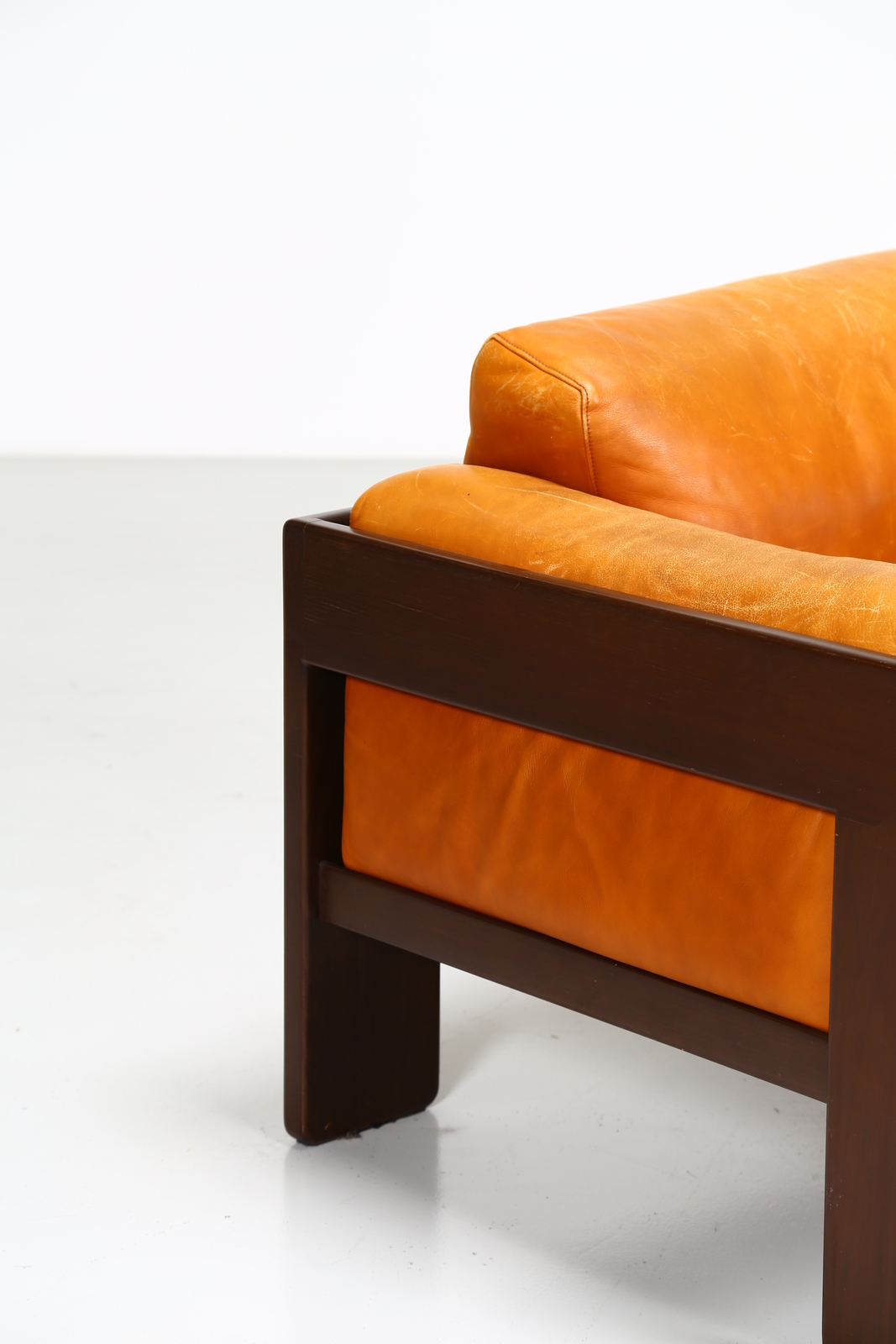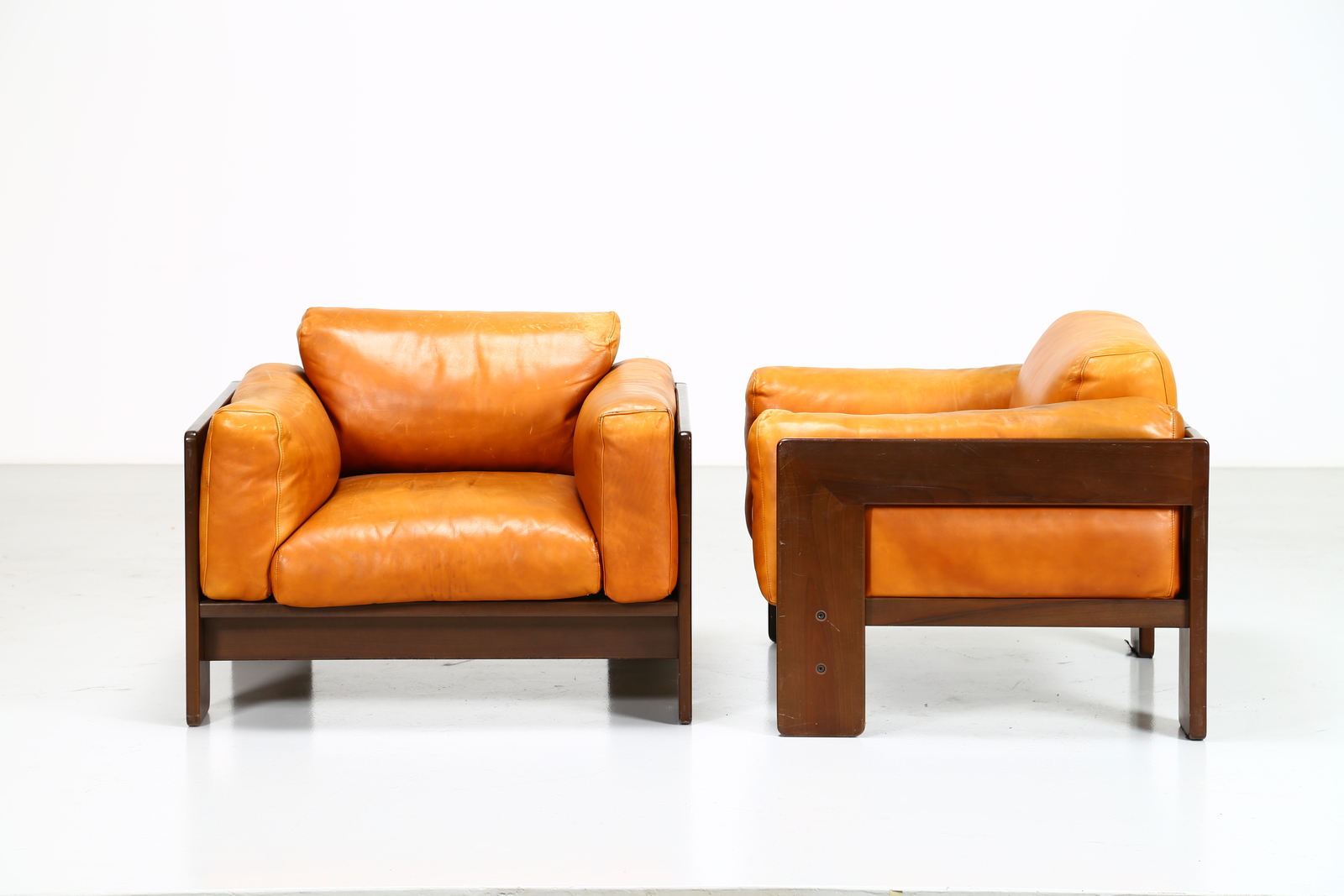 SCARPA AFRA & TOBIA Coppia di poltrone in noce e pelle, mod. Bastiano per Gavina anni 60. . Cm 91,00 x 70,00 x 80,00.