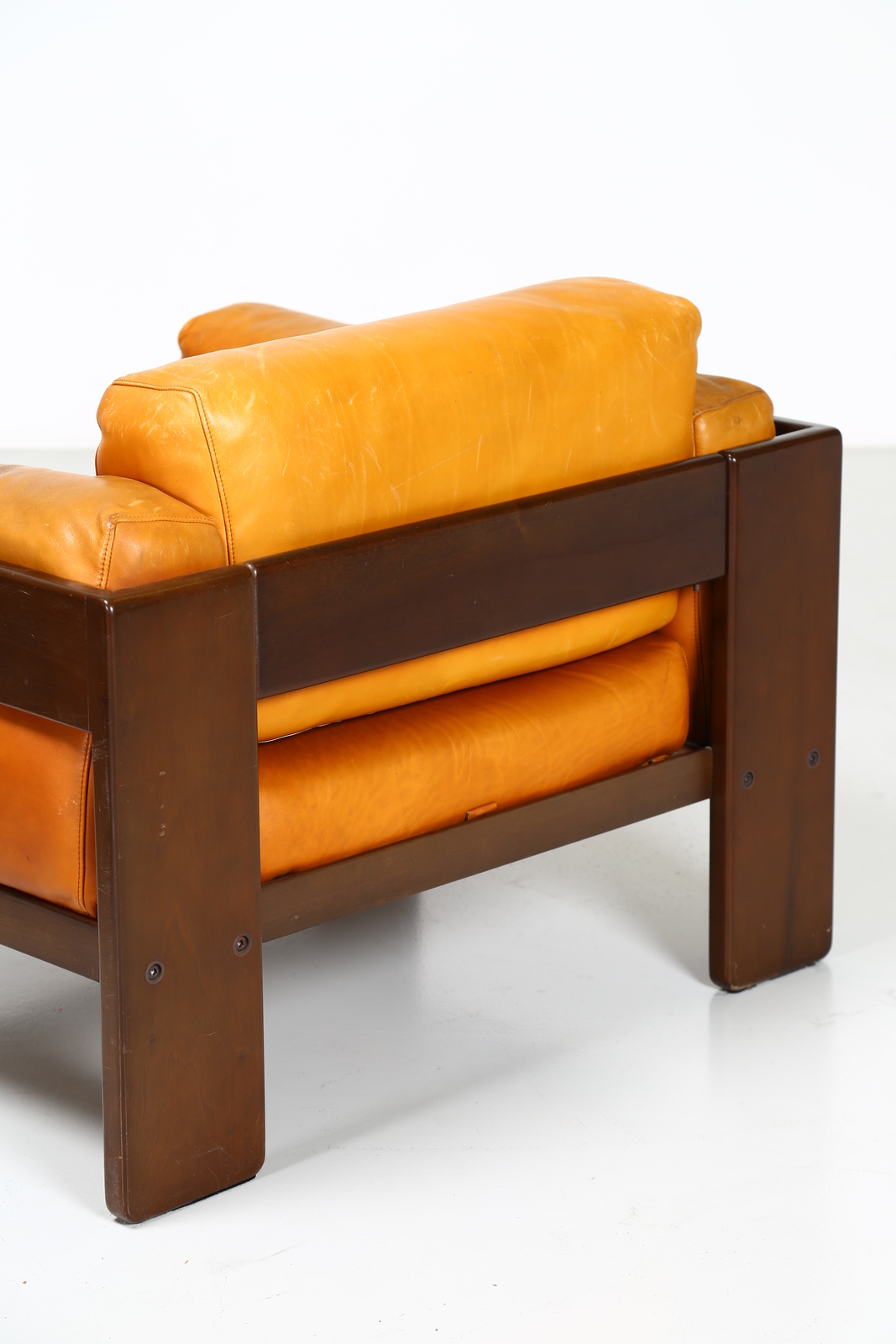 SCARPA AFRA & TOBIA Pair of walnut and leather armchairs, mod. Bastiano for Gavina, 1960s. . Cm 91,00 x 70,00 x 80,00.