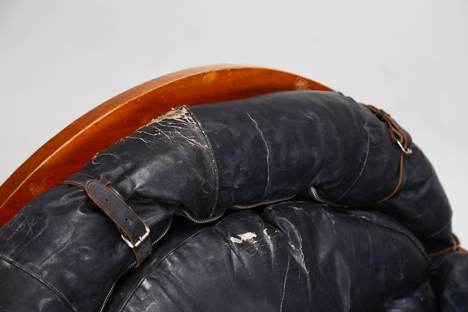 FRIGERIO LUCIANO Attrib. Coppia di poltrone in legno e cuoio, anni 70. -. Cm 90,00 x 79,00 x 94,00.