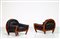 FRIGERIO LUCIANO Attrib. Pair of wood and leather armchairs, 1970s. . Cm 90,00 x 79,00 x 94,00.
