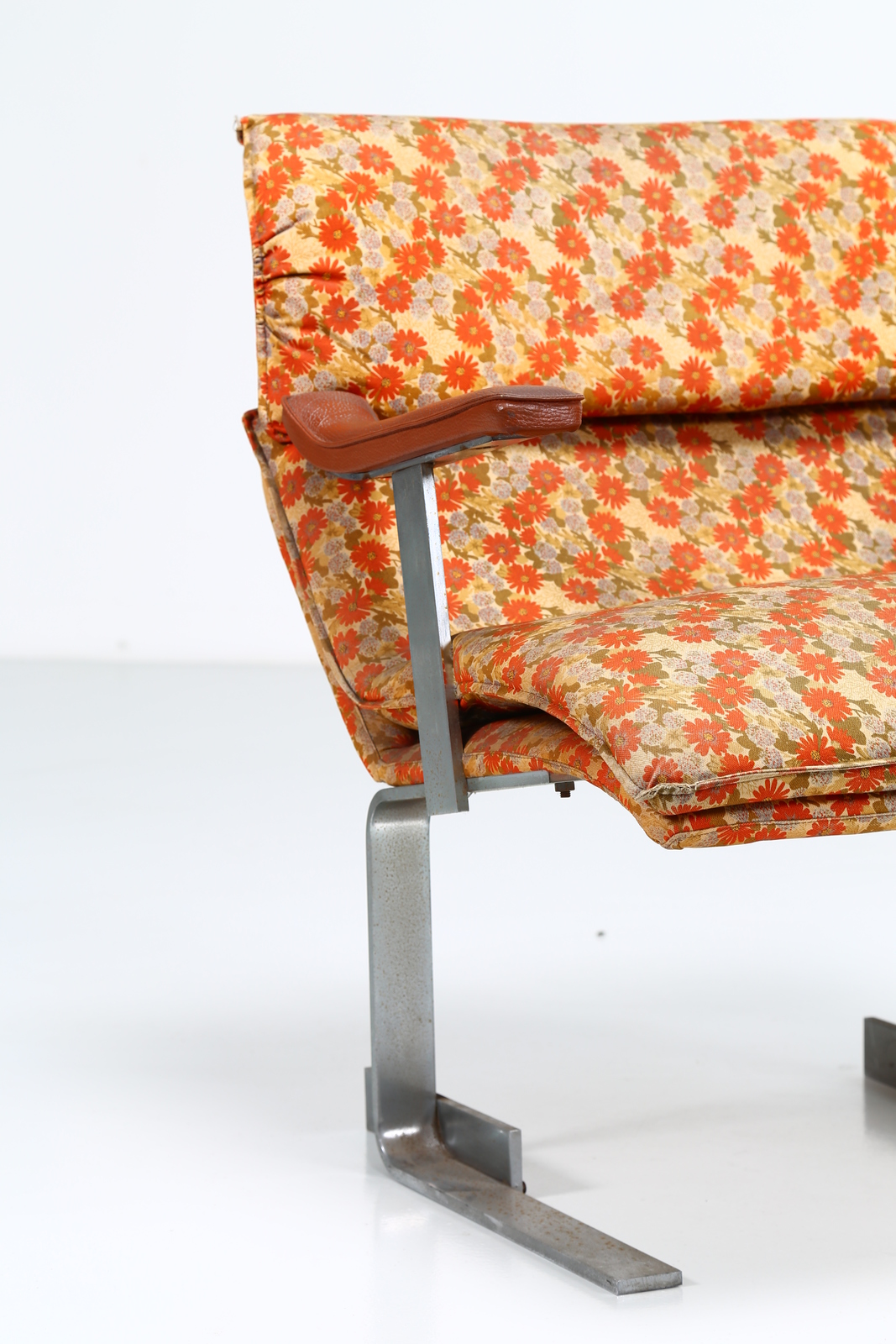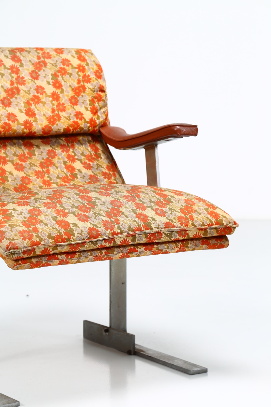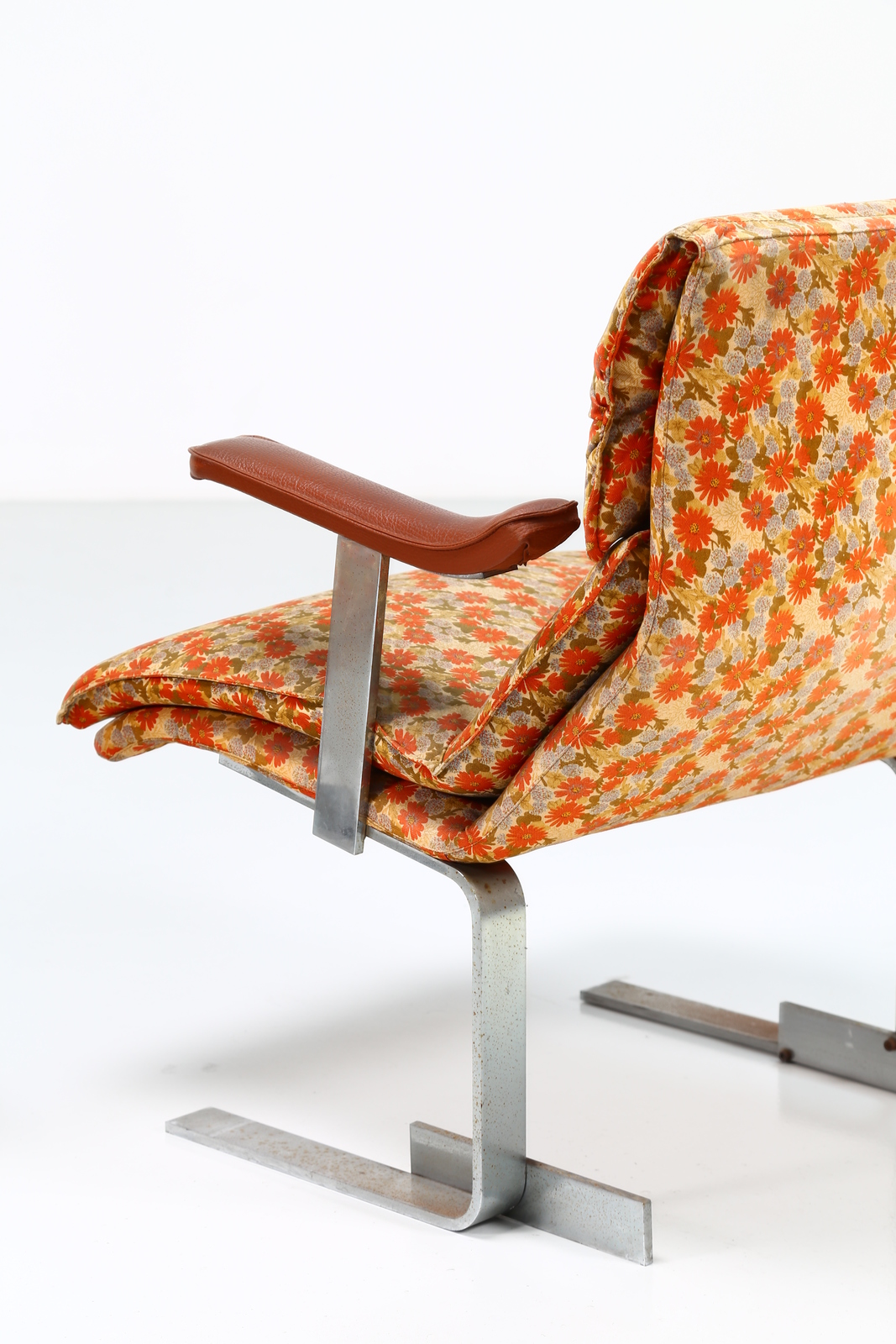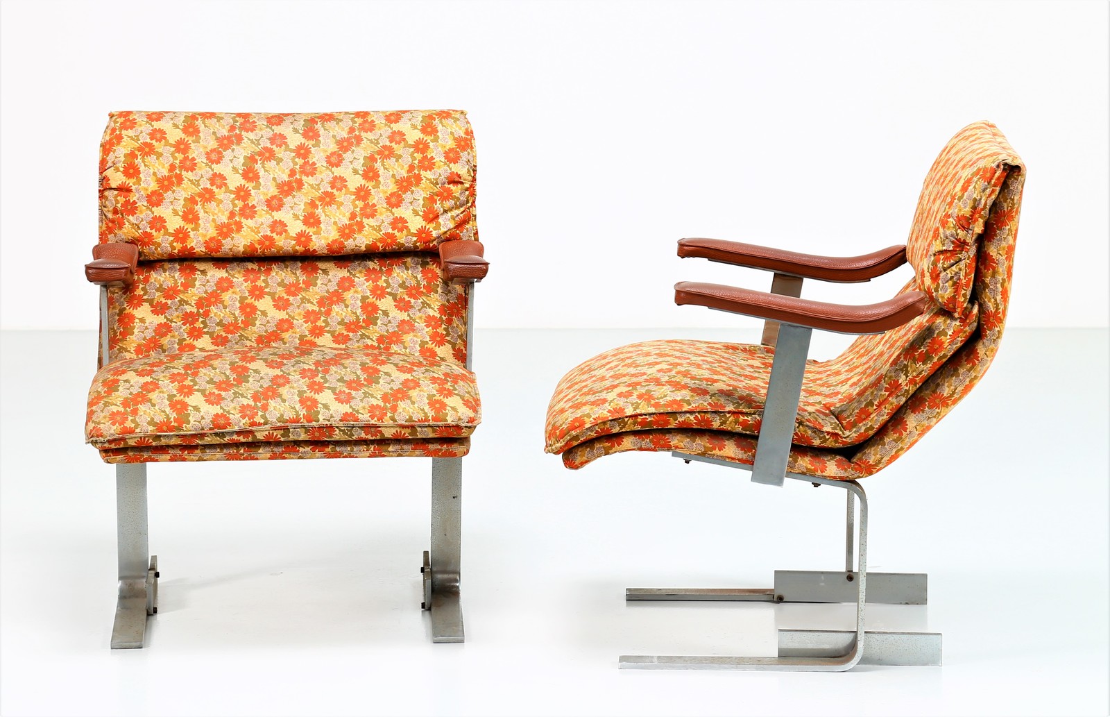 OFFREDI GIOVANNI (n. 1927) Pair of lacquered metal, fabric and skai armchairs, mod. Onda for Saporiti, 1970s. . Cm 65,00 x 79,00 x 69,00.
