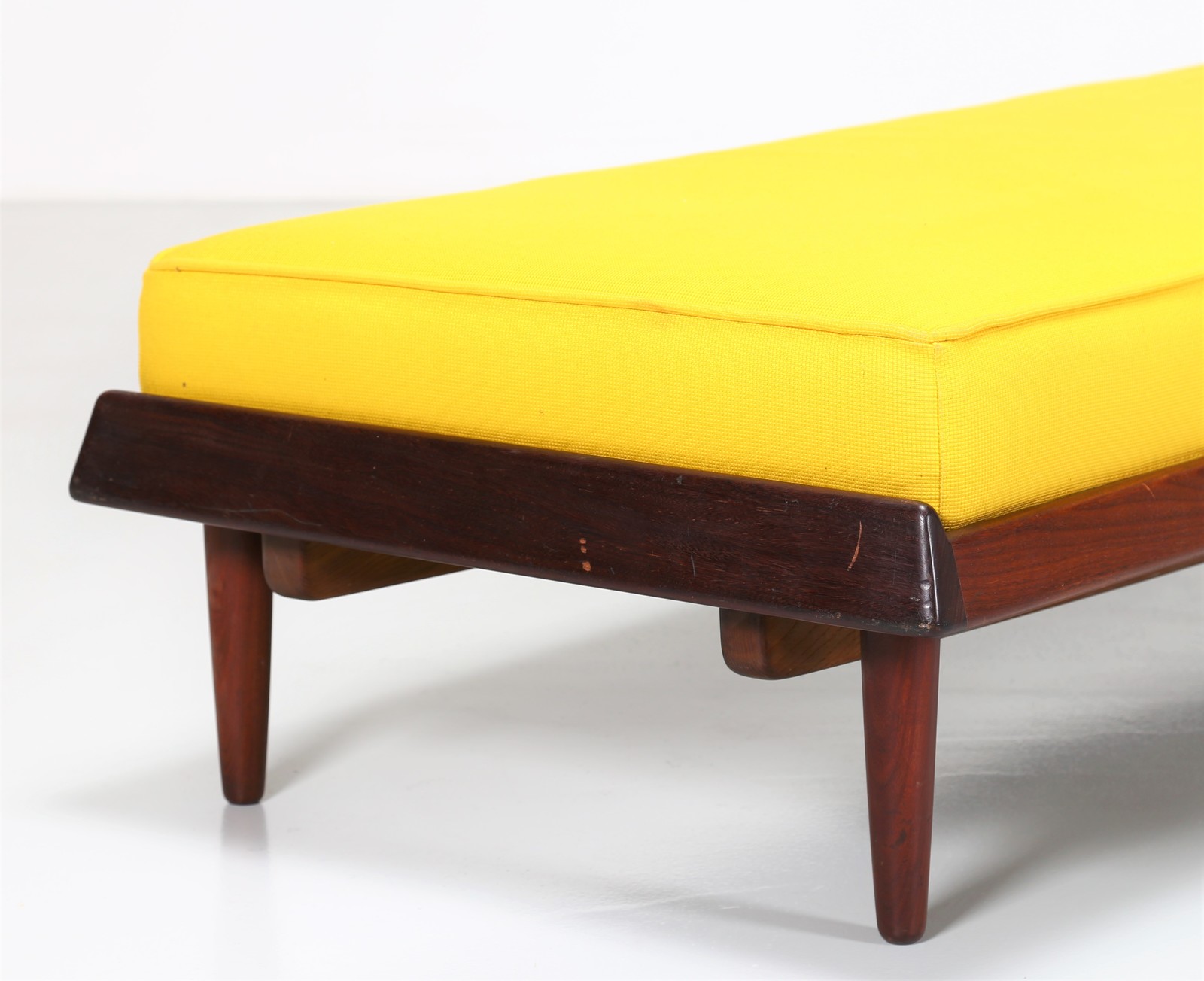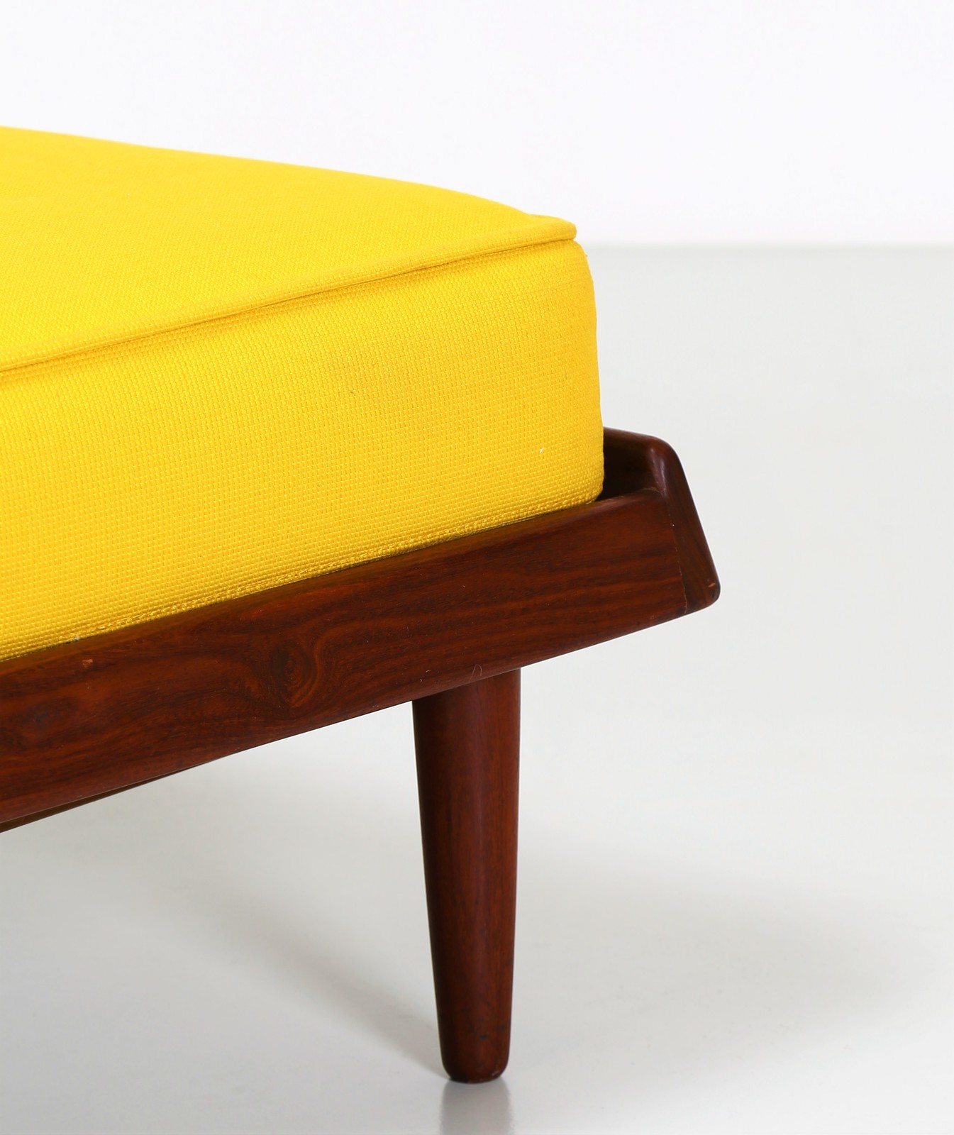 MANIFATTURA DANESE Teak and fabric dormeuse bench, 1960s. . Cm 196,00 x 40,00 x 69,00.