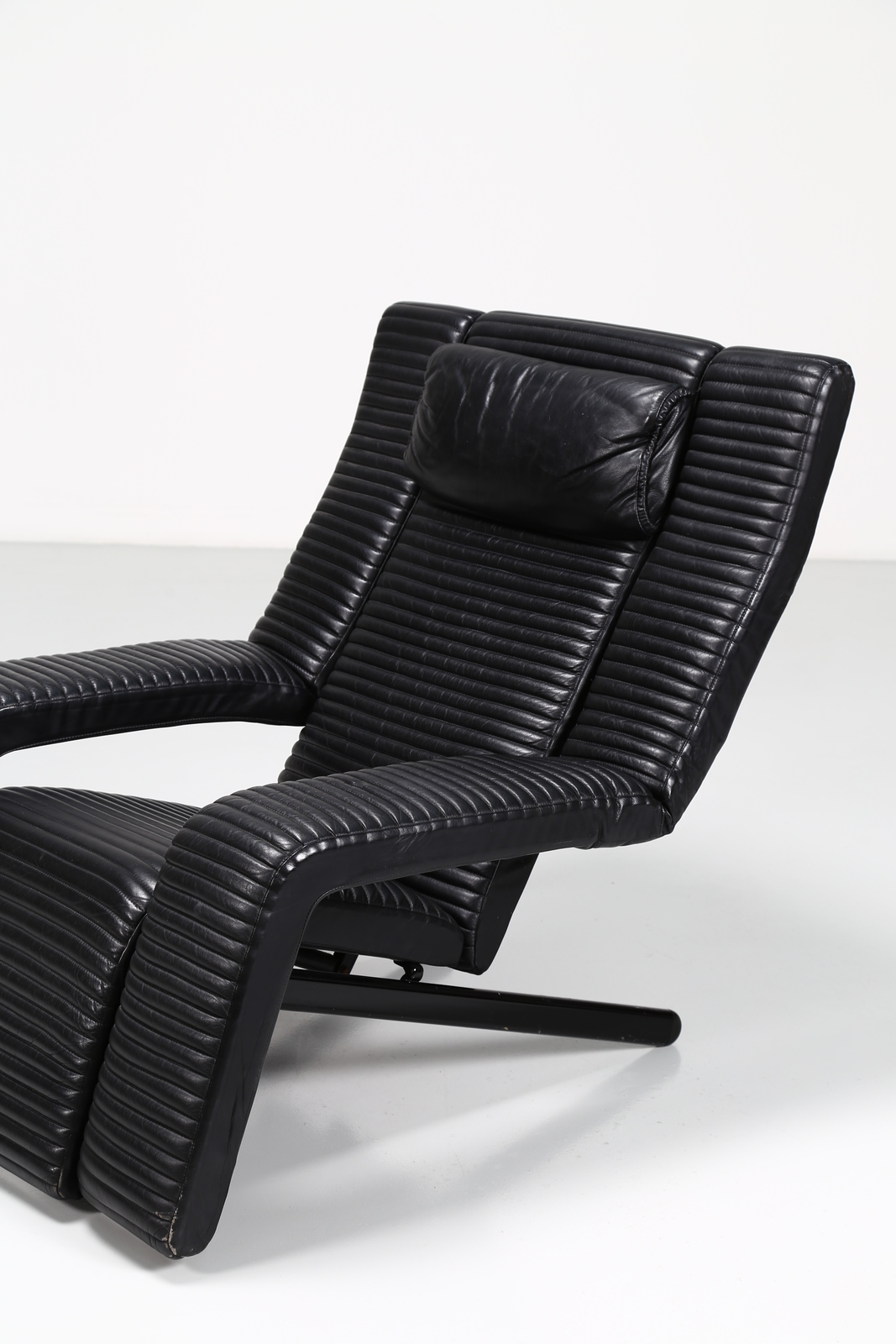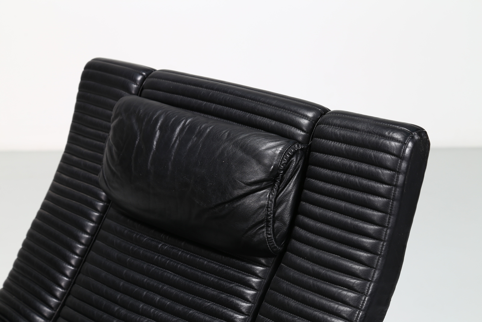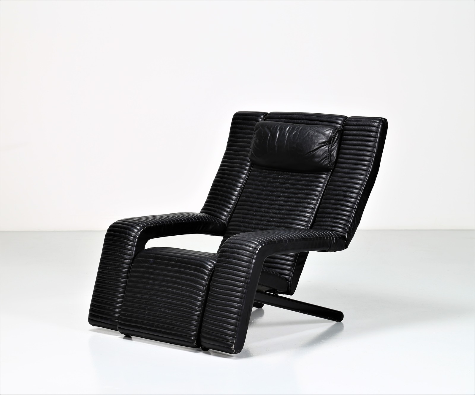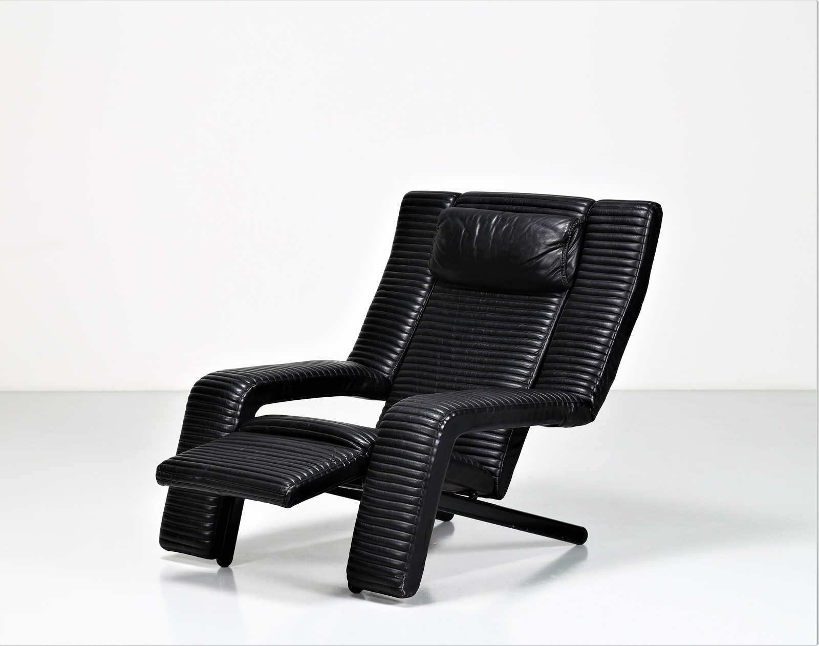 G.P.VITELLI E T.AMMANATI Poltrona in pelle e metallo laccato, reclinabile con poggiapiedi estensibile, mod. Kilkis per Brunati 1985. -. Cm 100,00 x 92,00 x 92,00.