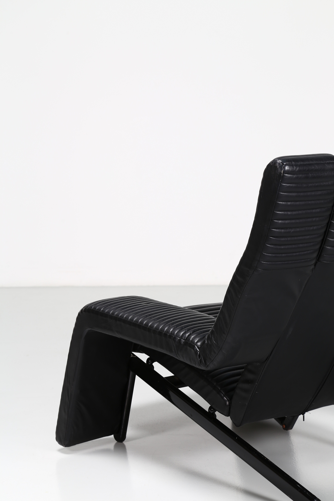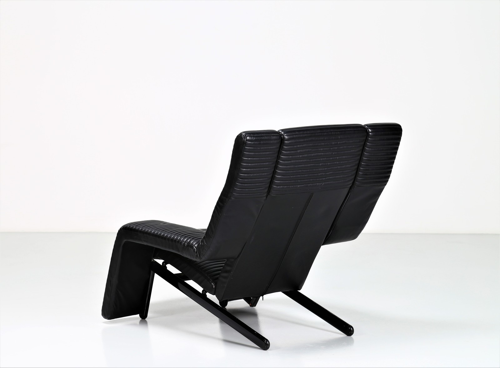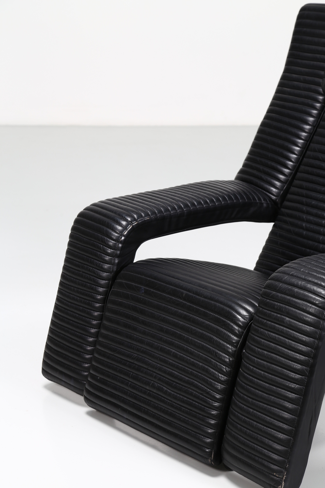 G.P.VITELLI E T.AMMANATI Leather and lacquered metal armchair, reclining with extensible footrest, mod. Kilkis for Brunati, 1985. . Cm 100,00 x 92,00 x 92,00.
