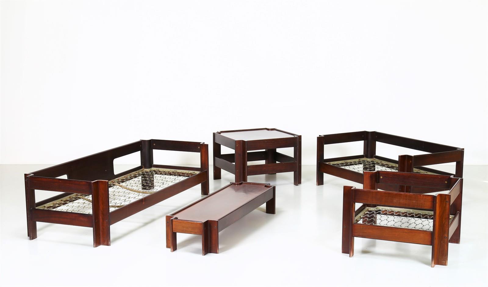 ASTI SERGIO (n. 1926) Salotto, due divani una poltrona, due tavolini, mod....