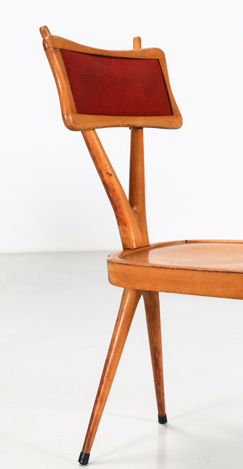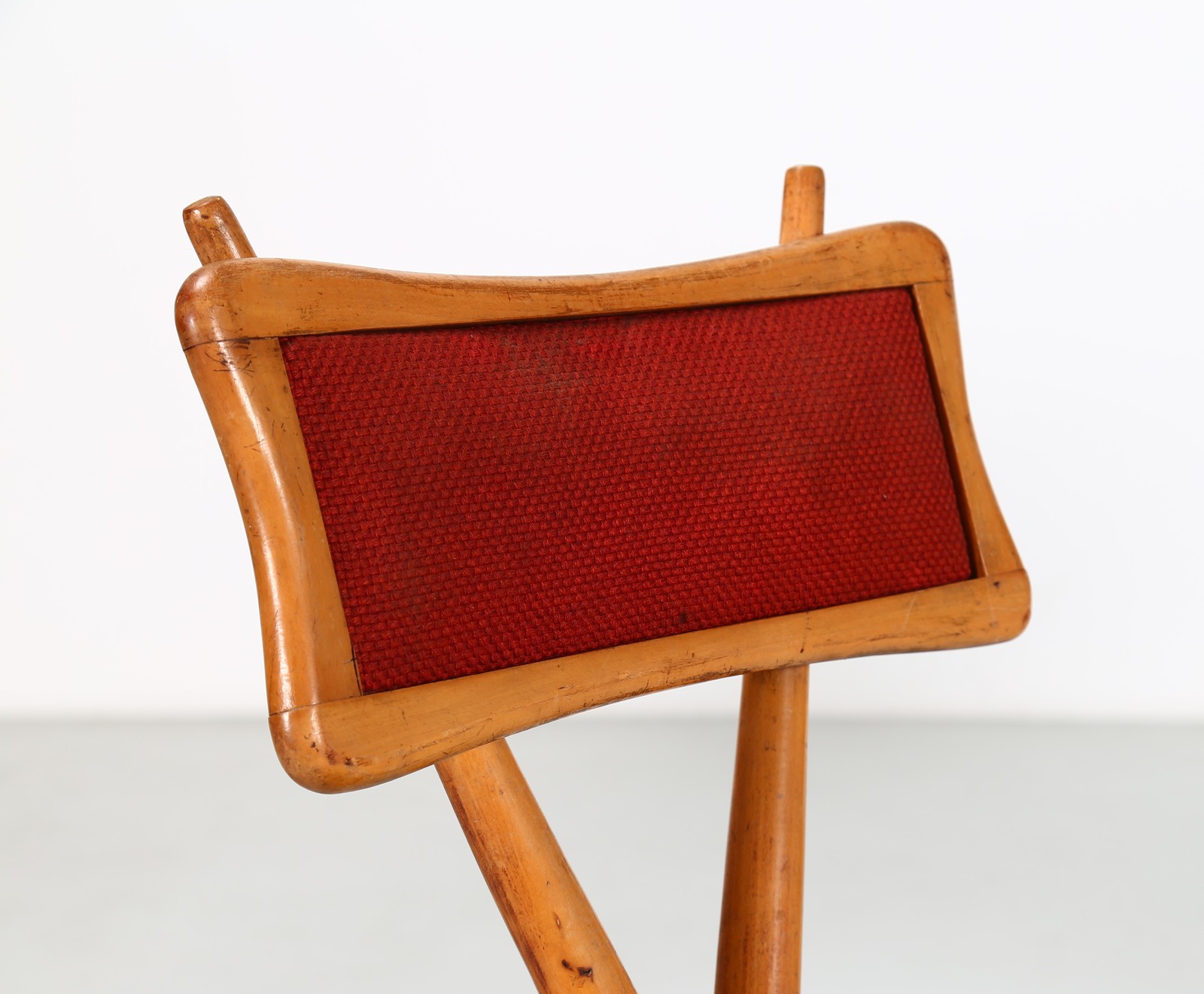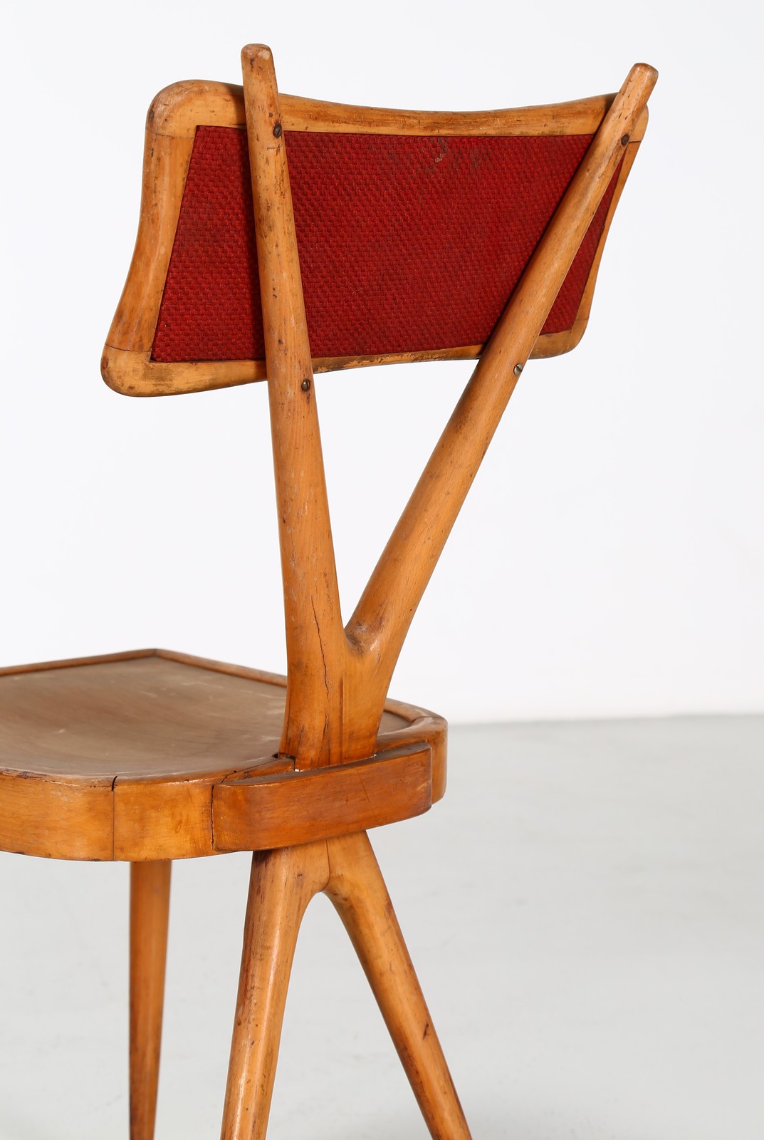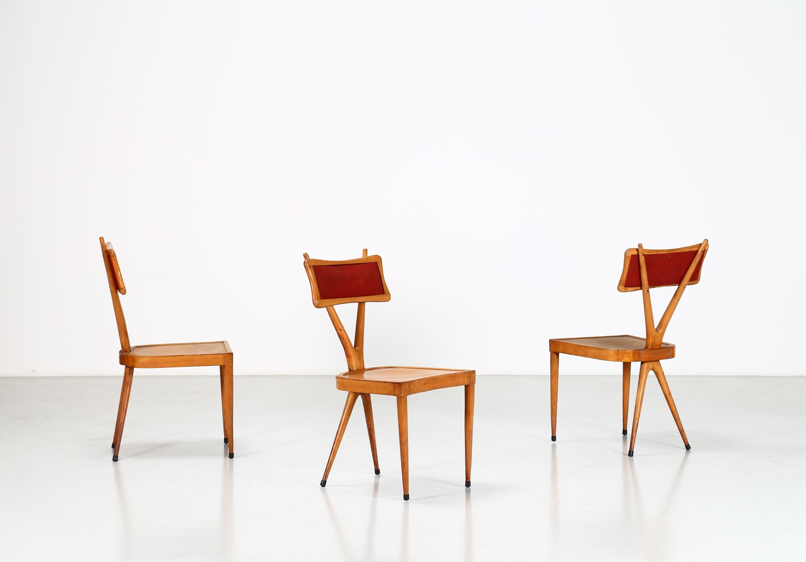 VIGORELLI GIANNI Three wood and original fabric chairs, 1950s. . Cm 44,00 x 87,00 x 52,00.