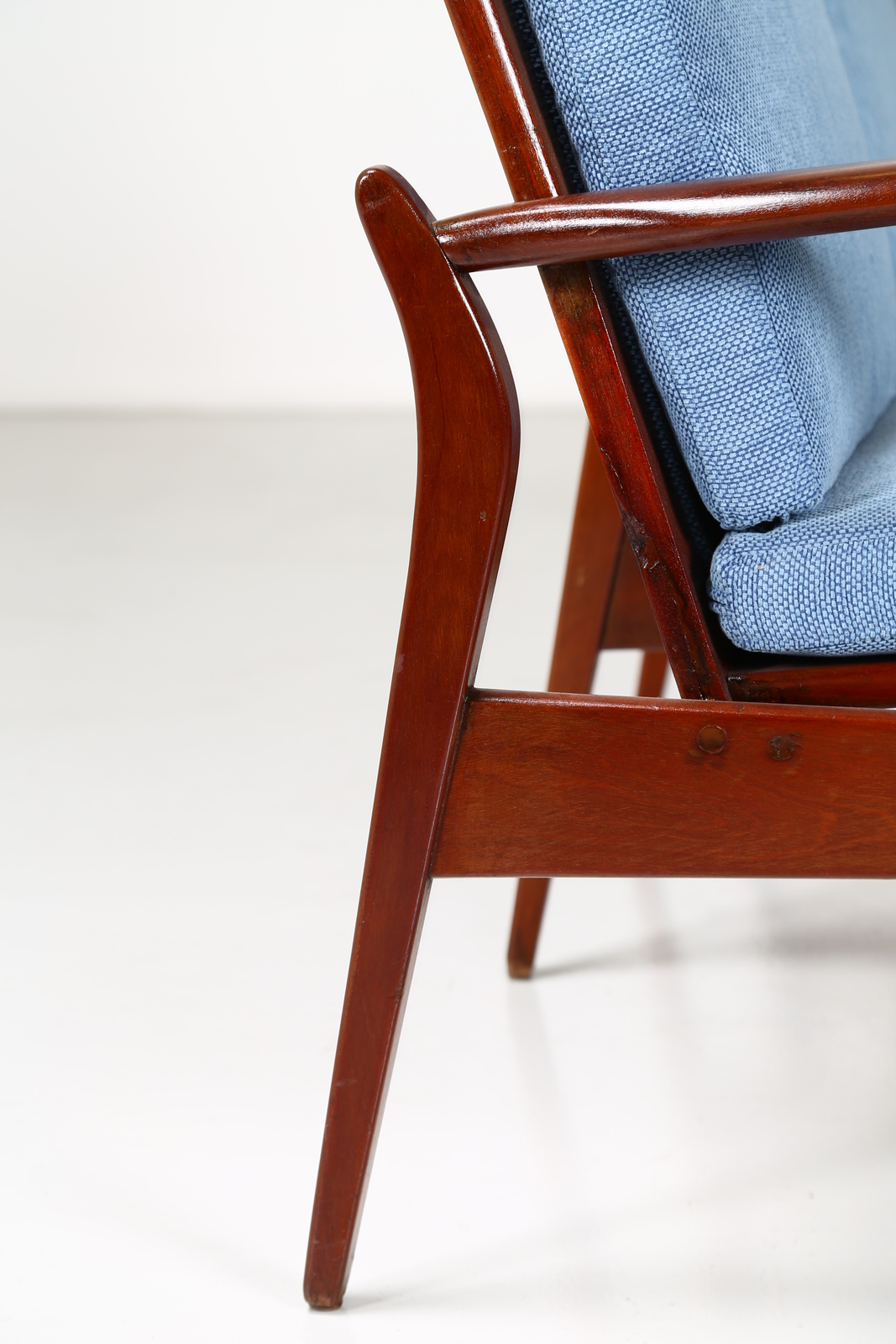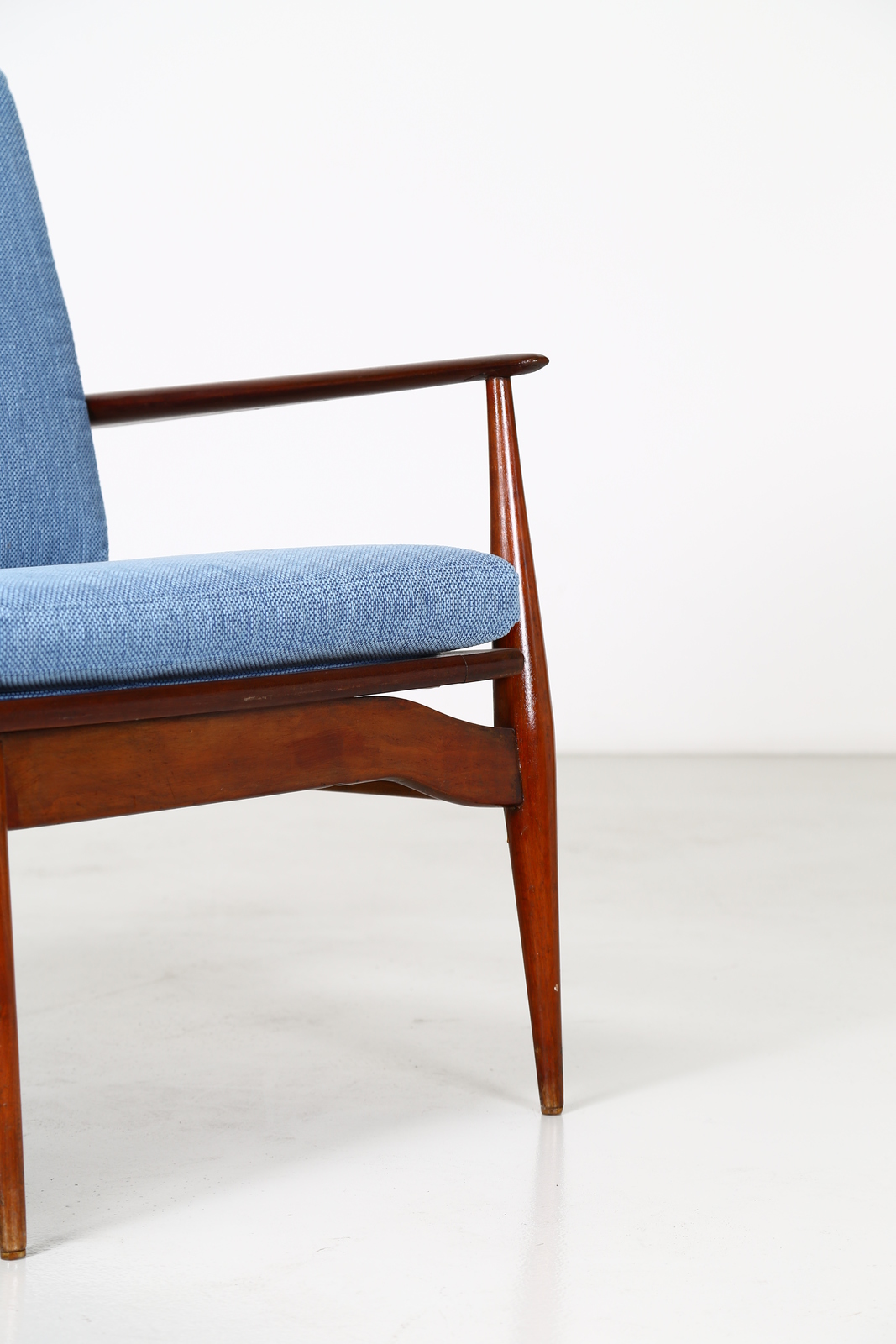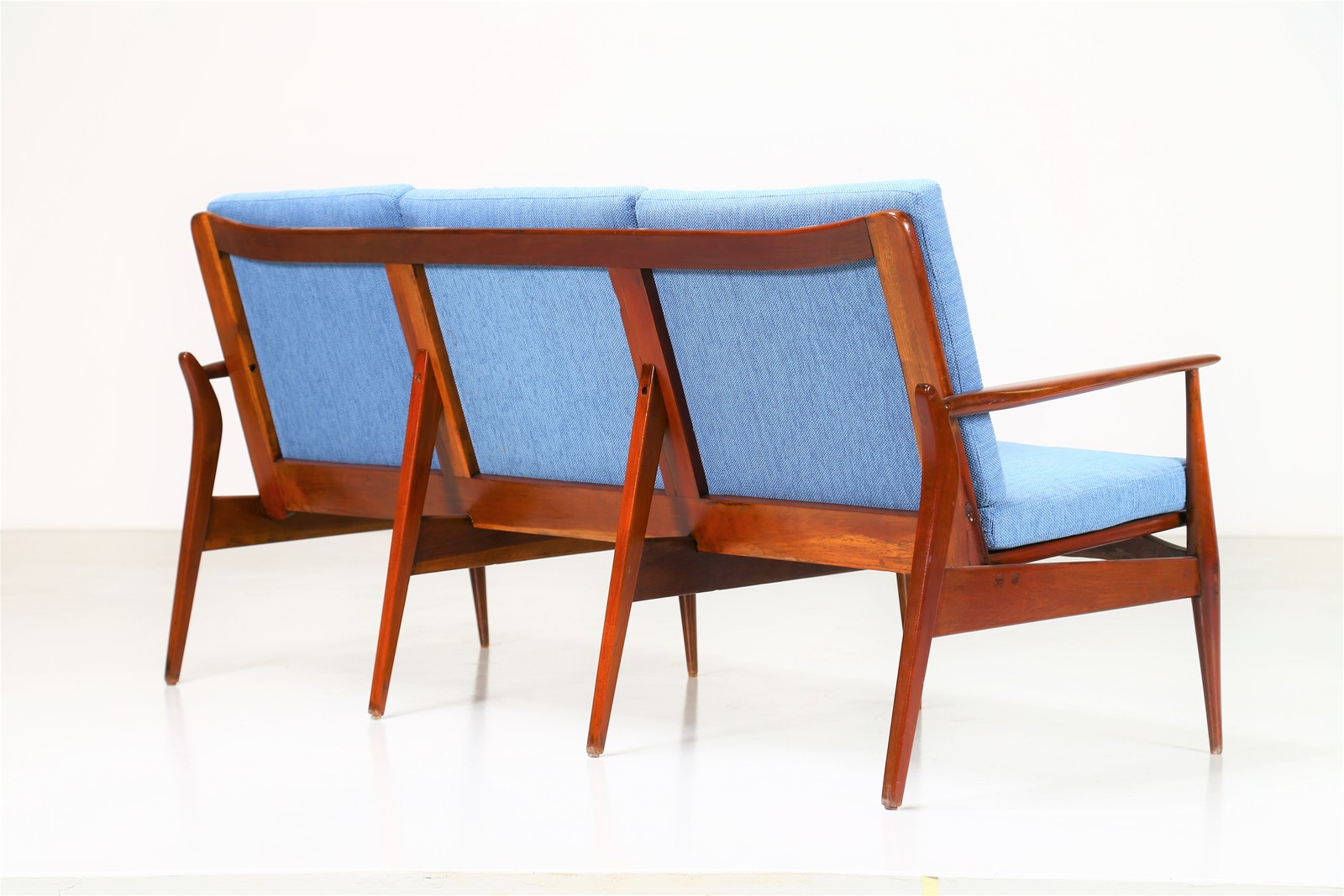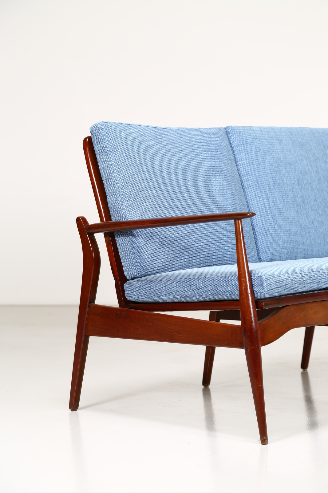 KOFOD-LARSEN Attrib. Mahogany and fabric sofa, 1960s . . Cm 173,00 x 84,00 x 70,00.