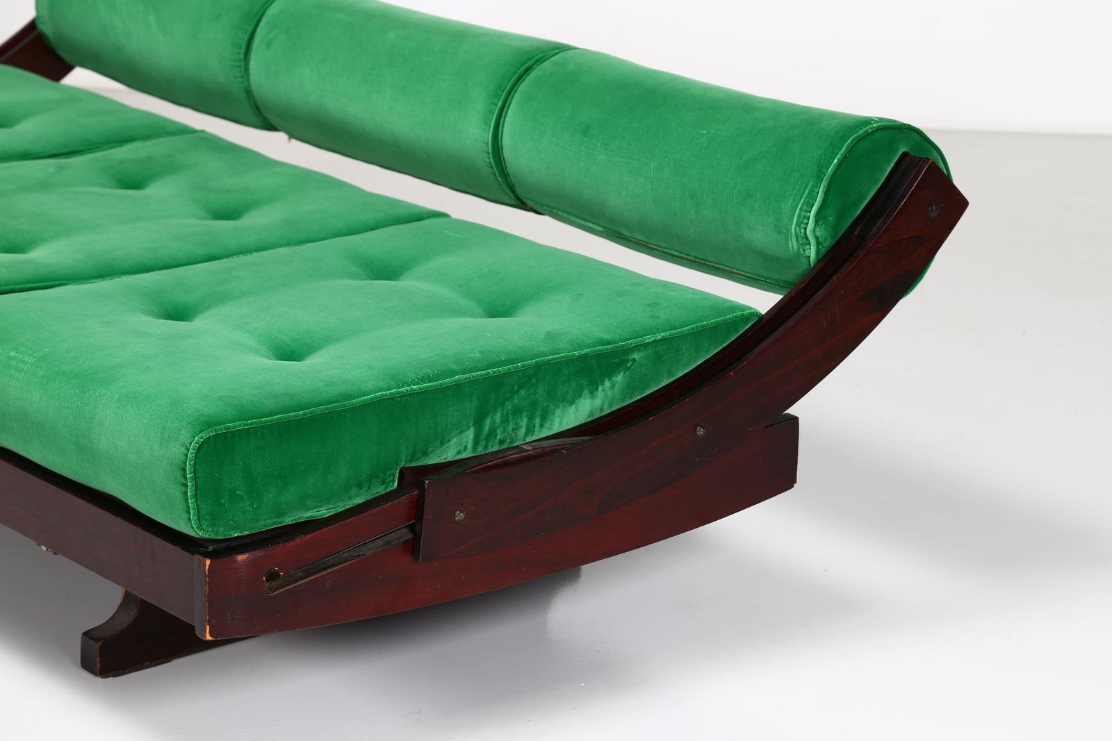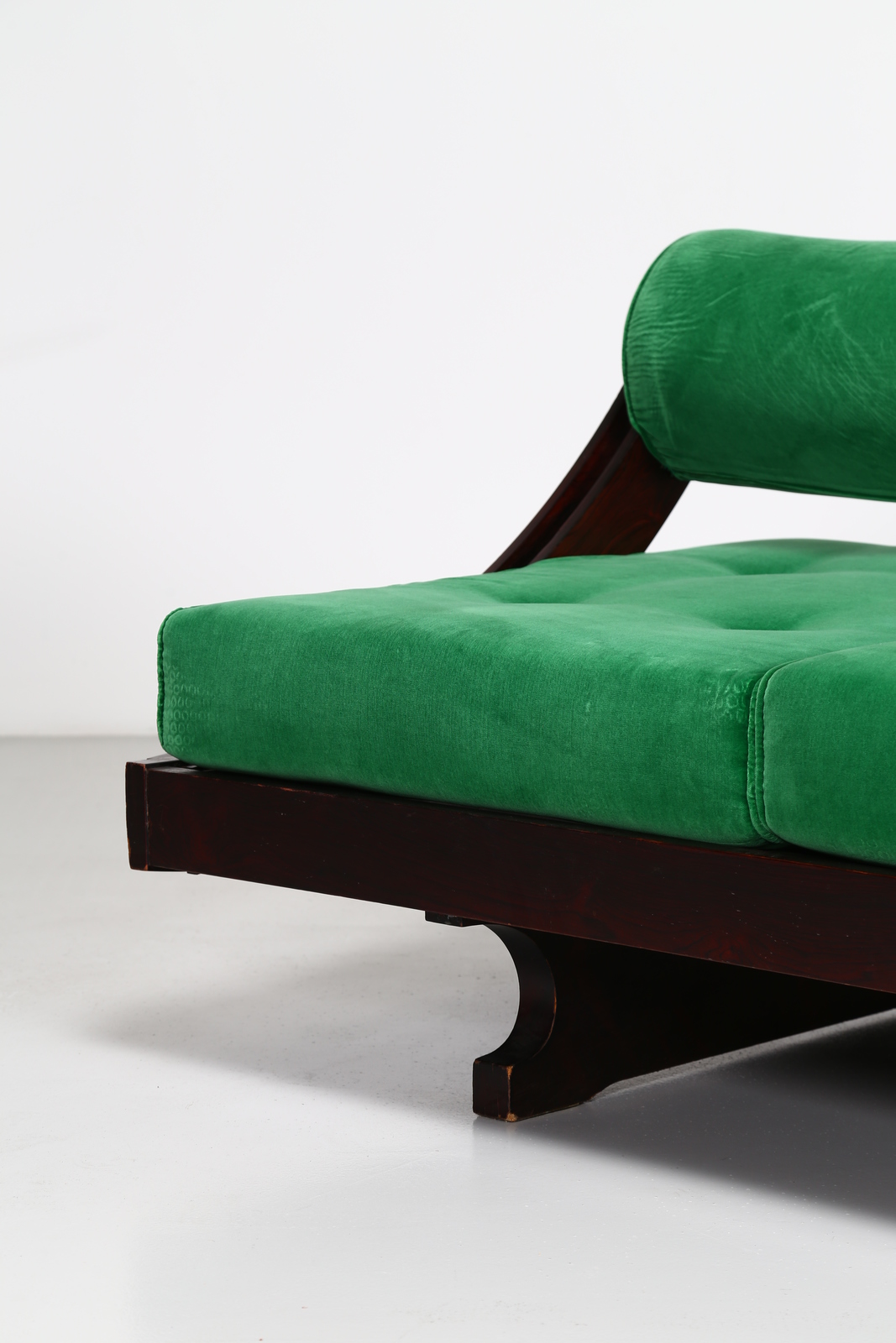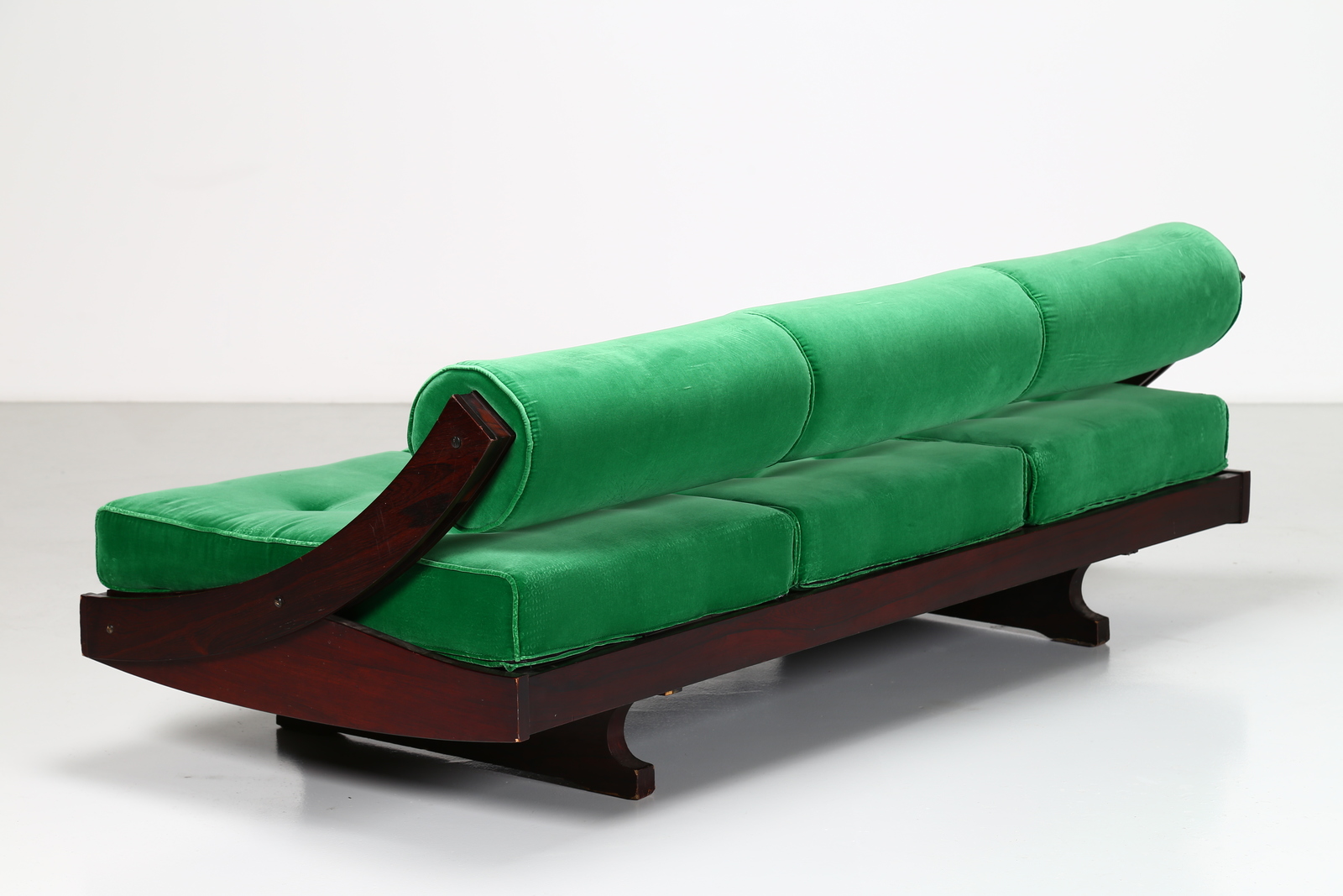 SONGIA GIANNI Veneered wood and fabric reclining sofa, mod. 6S 195, for Sormani, 1965 . . Cm 203,00 x 66,00 x 86,00.