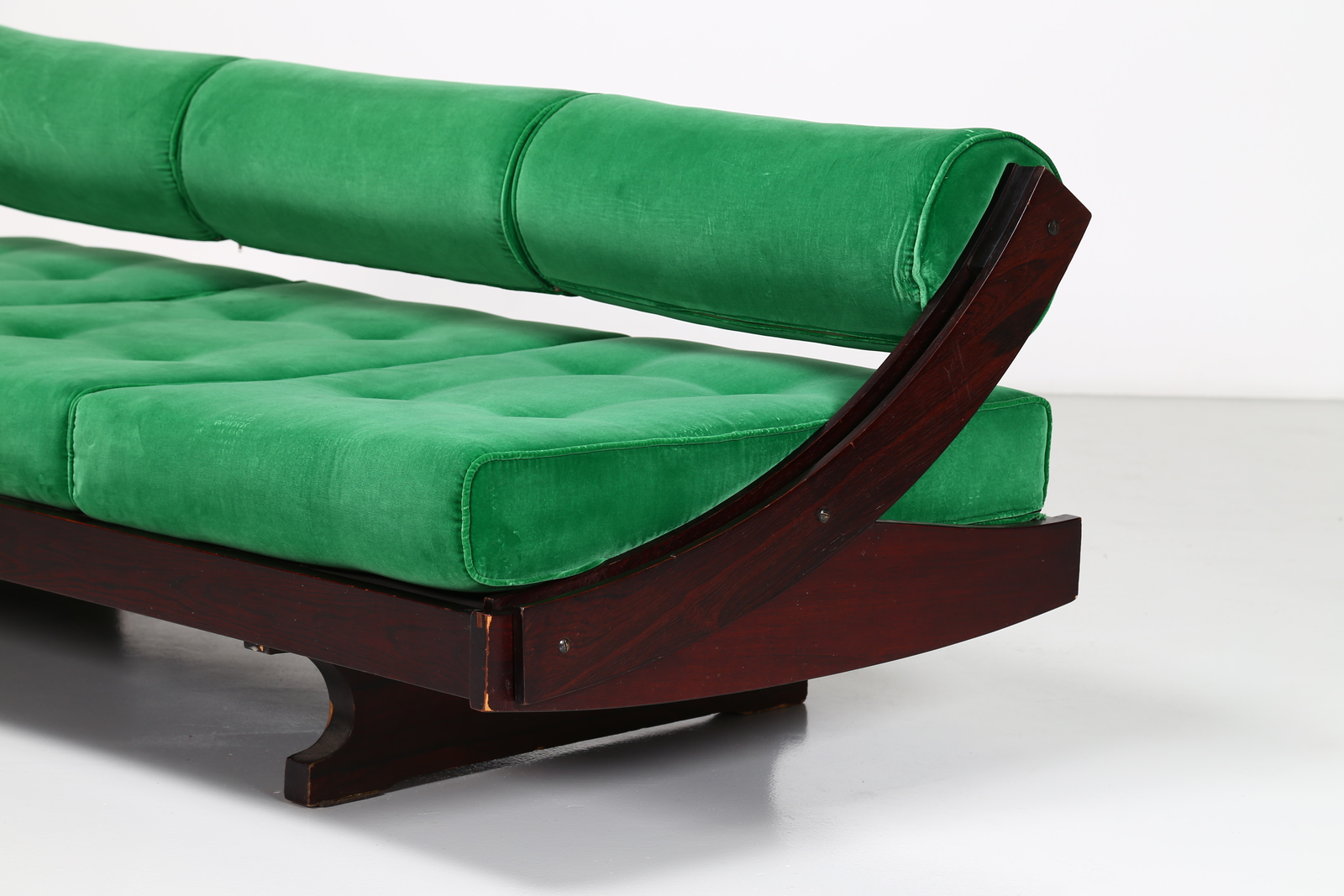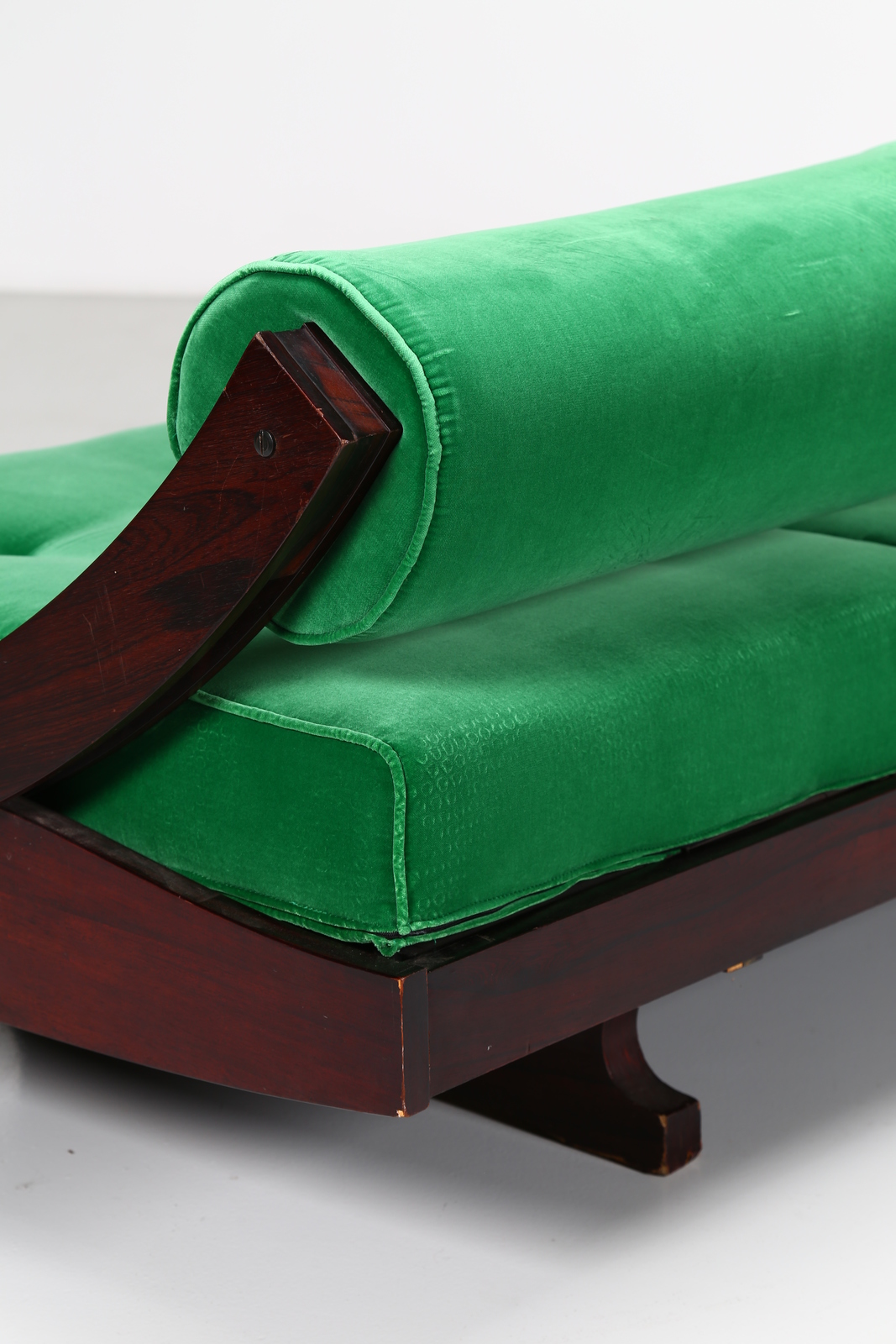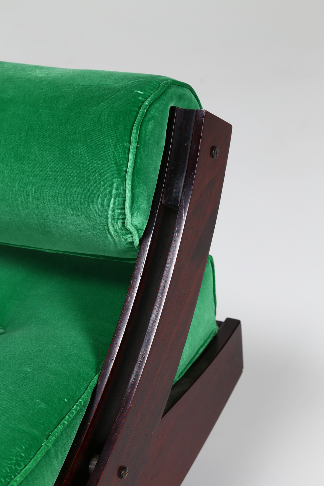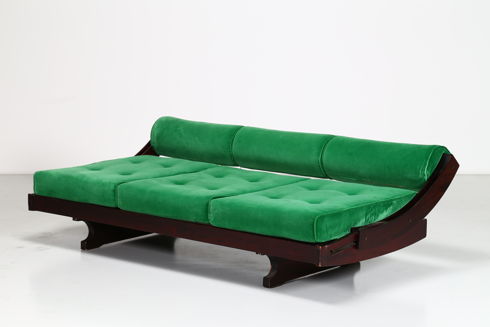 SONGIA GIANNI Veneered wood and fabric reclining sofa, mod. 6S 195, for Sormani, 1965 . . Cm 203,00 x 66,00 x 86,00.
