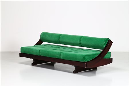 SONGIA GIANNI Divano reclinabile in legno impiallacciato e tessuto, mod. 6S 195, per Sormani 1965 . -. Cm 203,00 x 66,00 x 86,00.