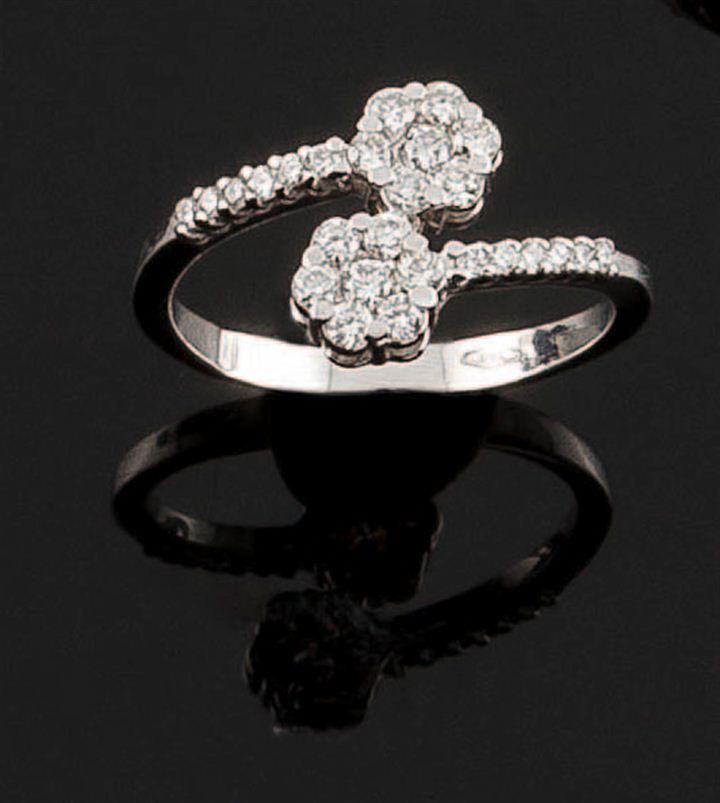 ANELLO Anello in oro bianco con due fiori disposti a contrariè con diamanti...